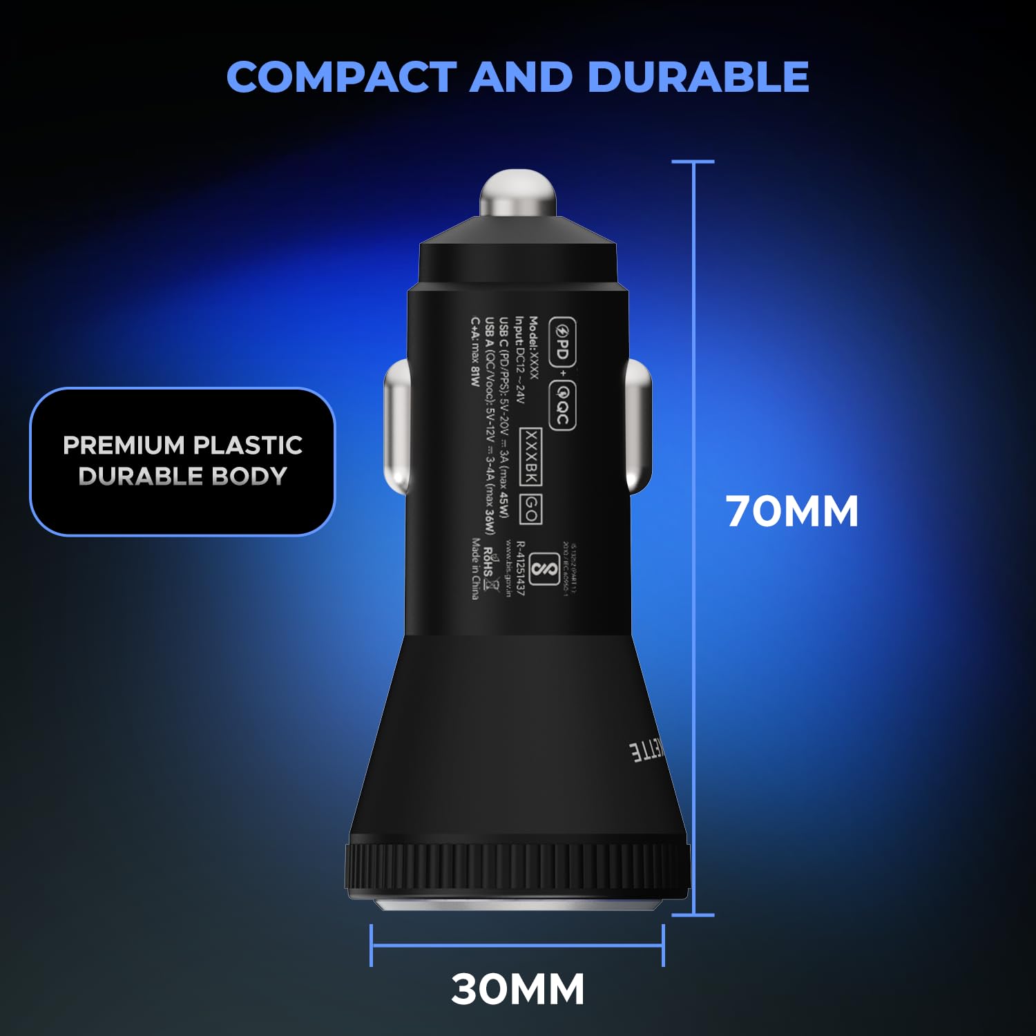 𝗗𝘂𝗮𝗹 𝗣𝗼𝗿𝘁 𝗙𝗮𝘀𝘁 𝗖𝗵𝗮𝗿𝗴𝗶𝗻𝗴 (𝗨𝗦𝗕-𝗖 𝟰𝟱𝗪 + 𝗨𝗦𝗕-𝗔 𝟯𝟲𝗪) – Delivers dedicated high-speed charging on both ports simultaneously