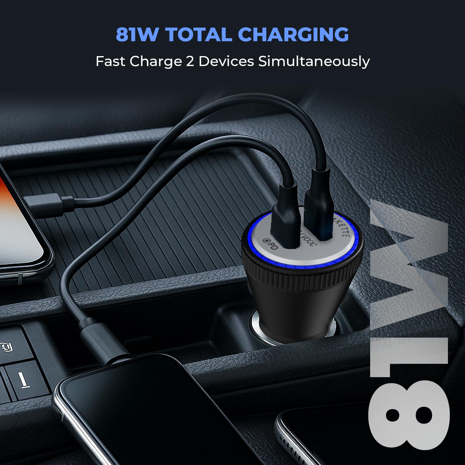 𝟴𝟭𝗪 𝗧𝗼𝘁𝗮𝗹 𝗣𝗼𝘄𝗲𝗿 𝗢𝘂𝘁𝗽𝘂𝘁 – Charge two devices at maximum speed, including laptops, tablets, and smartphones, without sacrificing performance.