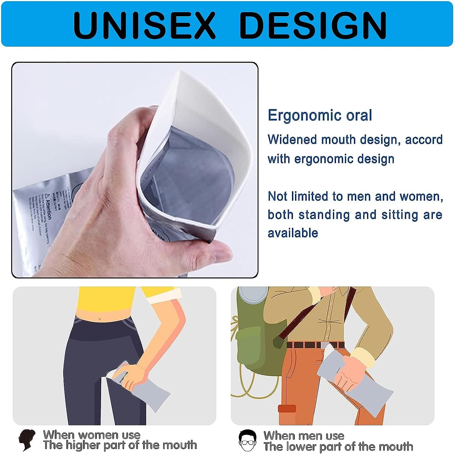 【Easy to use】Just open the urinal bag to use. There is a white absorbent cotton cloth in the bag, (no need to open or empty during use), which can turn it into an odorless anti-spill gel within 40 seconds.