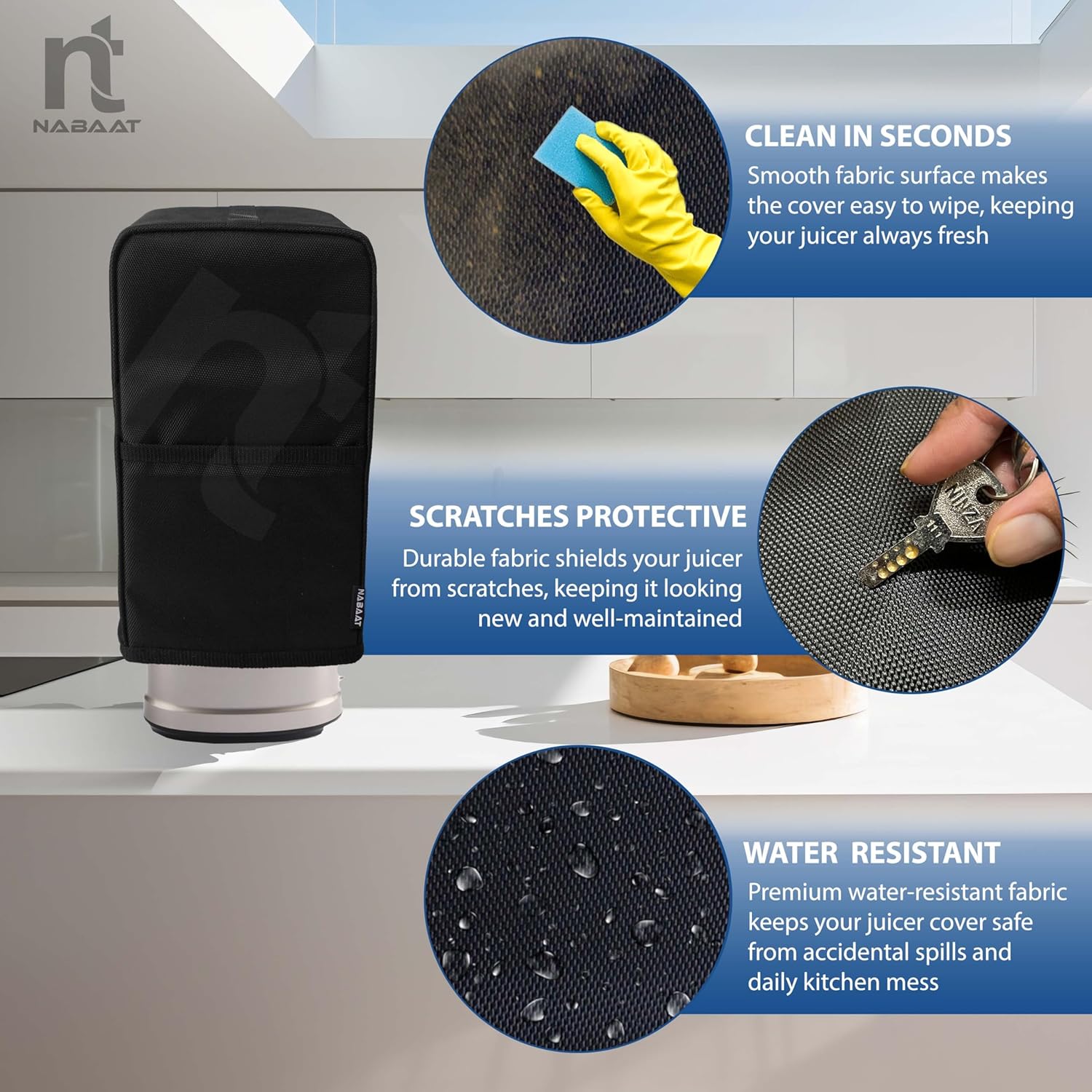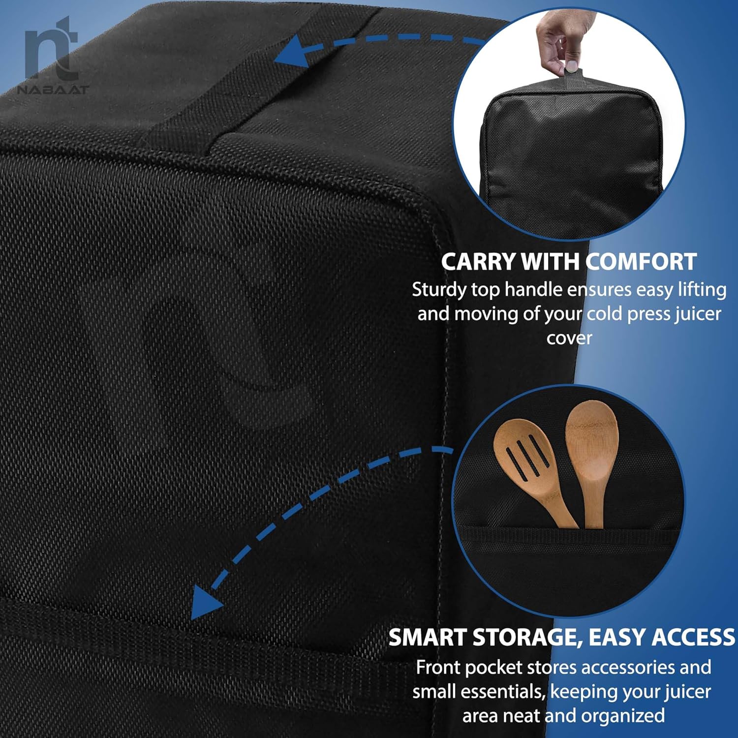 PREMIUM QUALITY: Nabaat Cold Press Juicer is constructed with PVC Coated Polyester Waterproof Fabric; this small appliance cover will stand up nicely without juicer in it, and can serve you well for years to come.