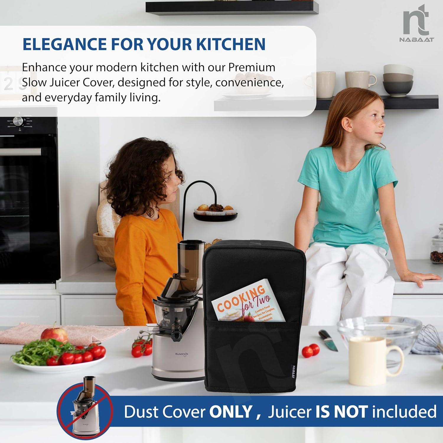 PROTECT YOUR SLOW JUICER: Nabaat Cold press juicer cover keeps your beloved juicer under wraps while being protected from various kitchen elements including dust, dirt, stains, spills, fingerprints, scratches and more. It is padded to prevent the small appliance from tiny impacts. You can be assured that you will have the mixer look as good as new.