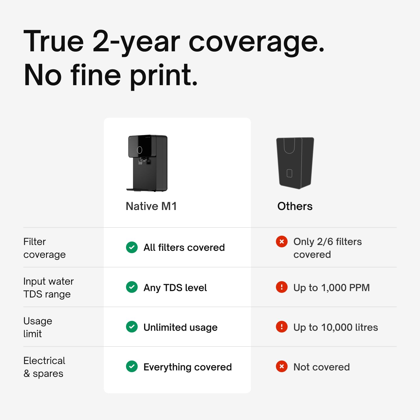 No Service for 2 Years: Advanced multi-micron filtration and self-cleaning technology means filters last a full 2 years without any maintenance, AMC or service calls. Save up to ₹20,000 on service costs over 8 years.