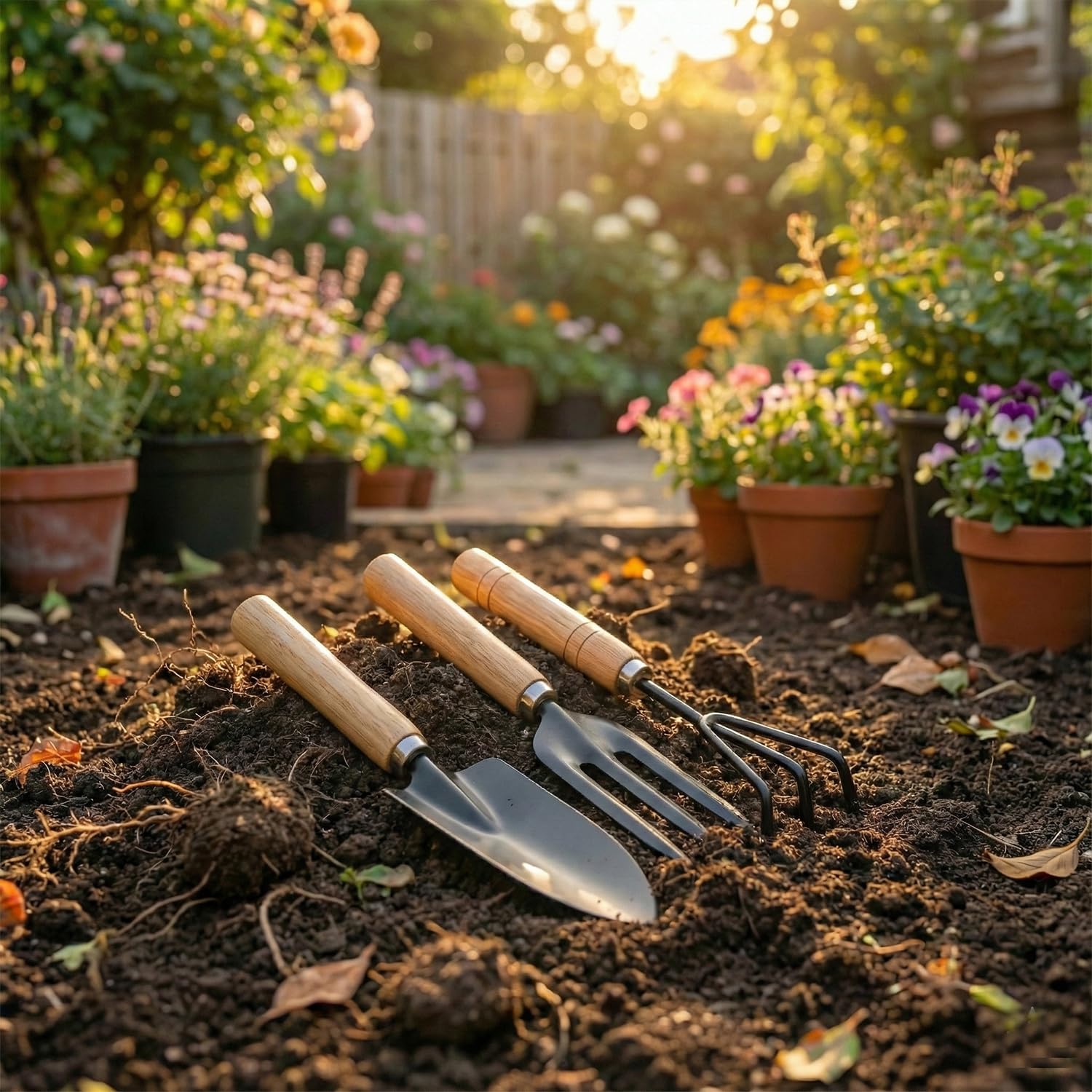 Durable Metal Gardening Tools – Strong rust-resistant heads designed for soil digging, loosening, aerating and everyday home gardening tasks in pots, planters & backyards