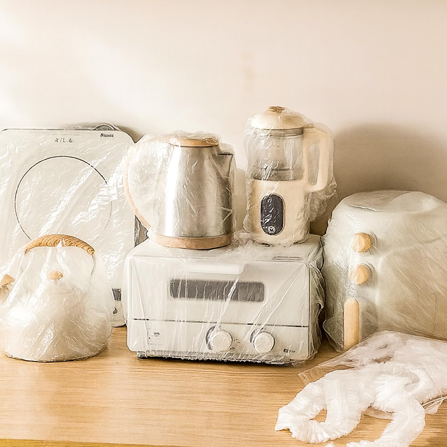 Small size disposable plastic furniture cover fits most standard furniture pieces, clear transparent design allows visibility, best-quality dustproof material provides secure coverage & easy disposal.