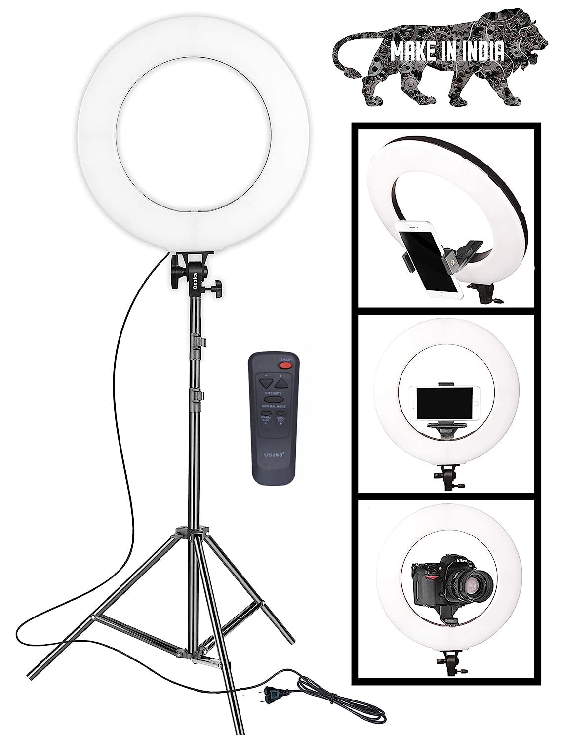 Included Components : 18” Ring Light – 1 pc, Mobile Holder – 1, T-Bracket – 1 pc, Wireless Remote – 1 pc, Light Stand 9 Feet – 1 pc and Carry Case – 1 pc