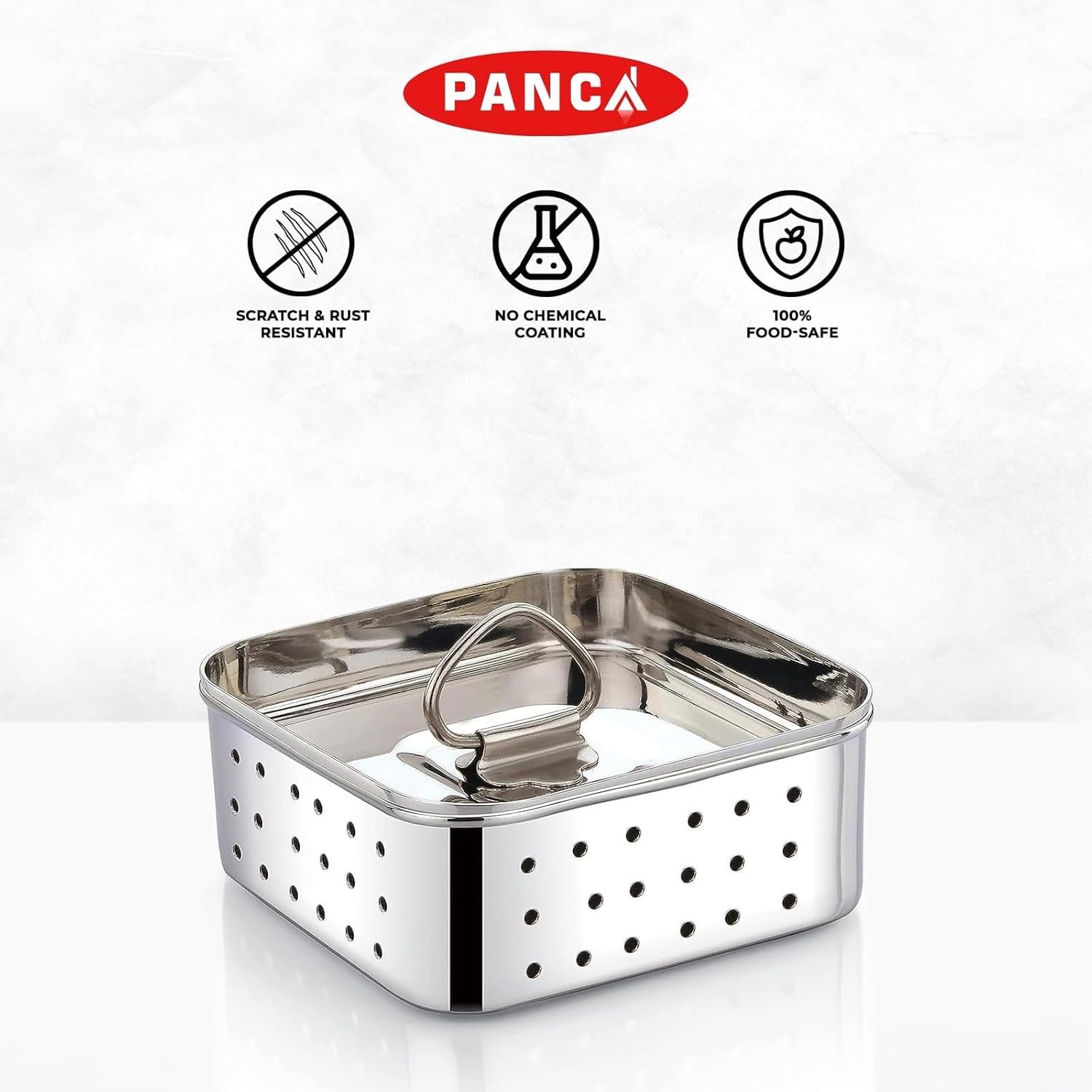 PANCA Stainless Steel Paneer Maker Mould Medium Size, Paneer Press with Lid, Tofu Press Mould Maker, Whey Seperator (Square, 450ml Capacity)