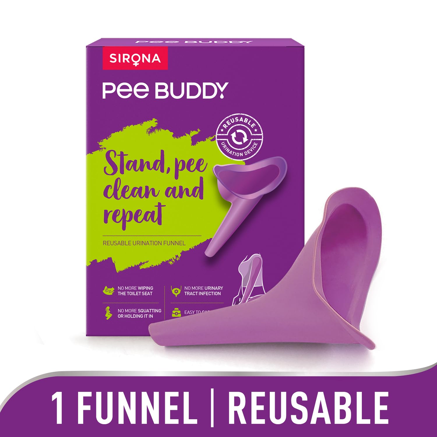Female reusable urination device allows women’s of all ages to stand and urinate with its unique designed funnel. It is a revolutionary product for women who hate dirty toilets when travelling by flights or train or highways for work or leisure treks, marathons, road trips, events or those with medical condition joint pains or pregnancy. Now use reusable pee device and stay away from infections, UTI. No more wiping of seat, no more squats, no more holding it in.