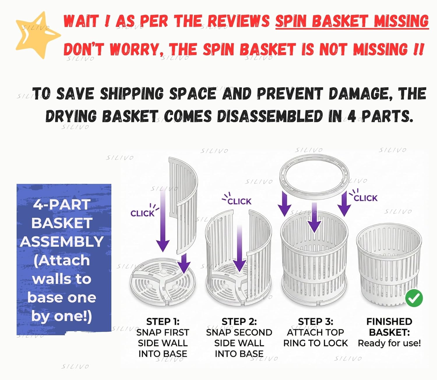 ✅Detachable Drain Basket with Spin Function: Built-in mini dryer basket quickly drains and dries small garments such as underwear, towels, socks, and baby wear.