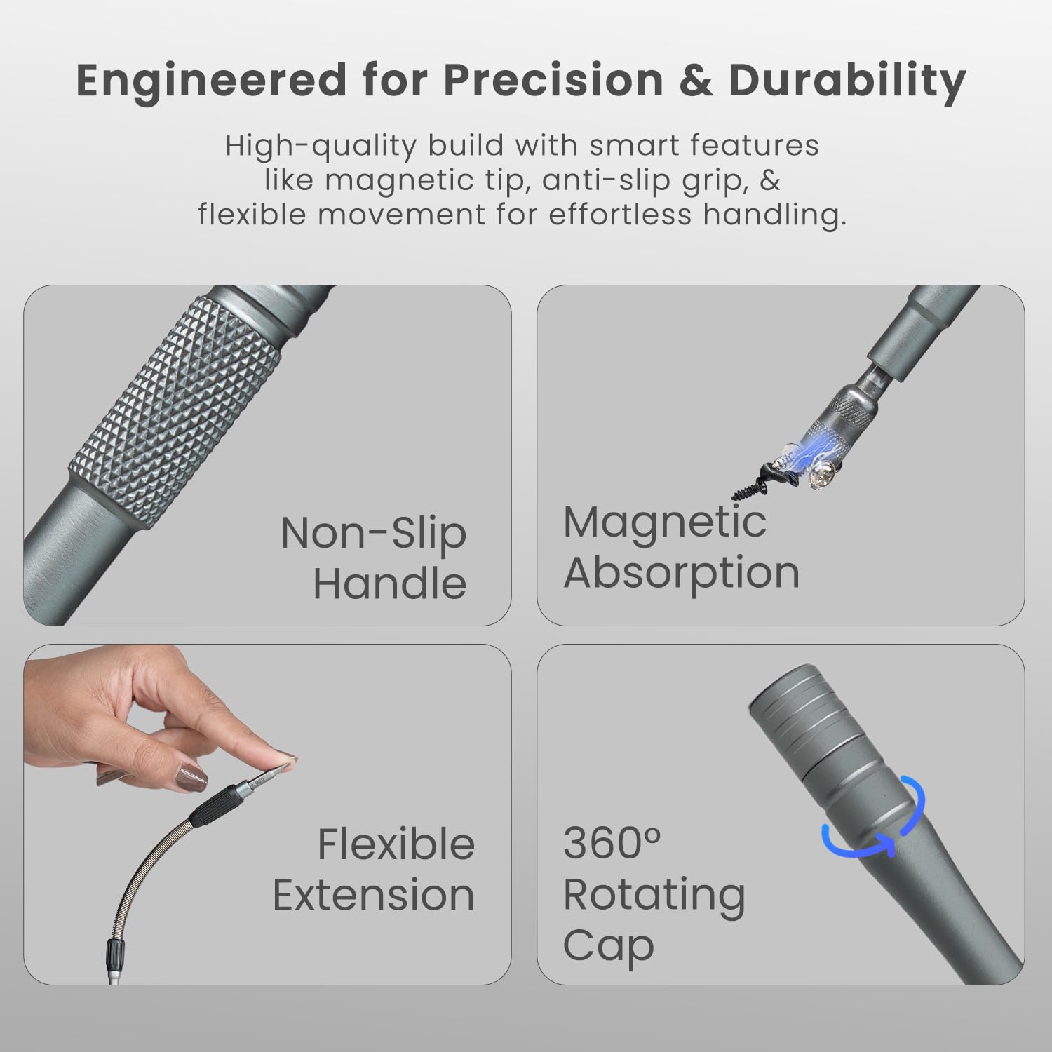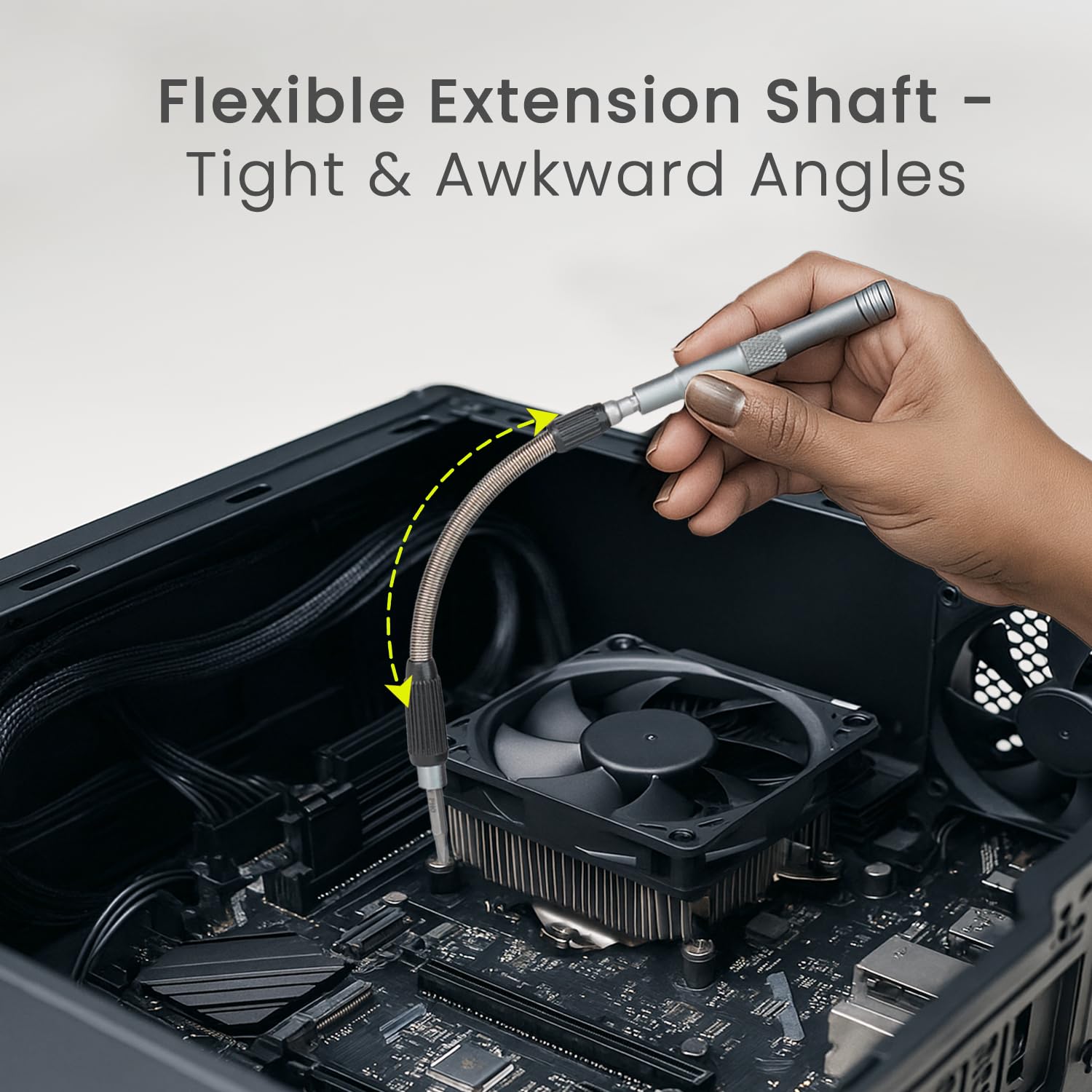 Flexible Extension Shaft for Hard-to-Reach Spots – Includes a bendable extension rod that helps reach tight or tricky spaces with ease – perfect for deep sockets, consoles, or embedded screws.