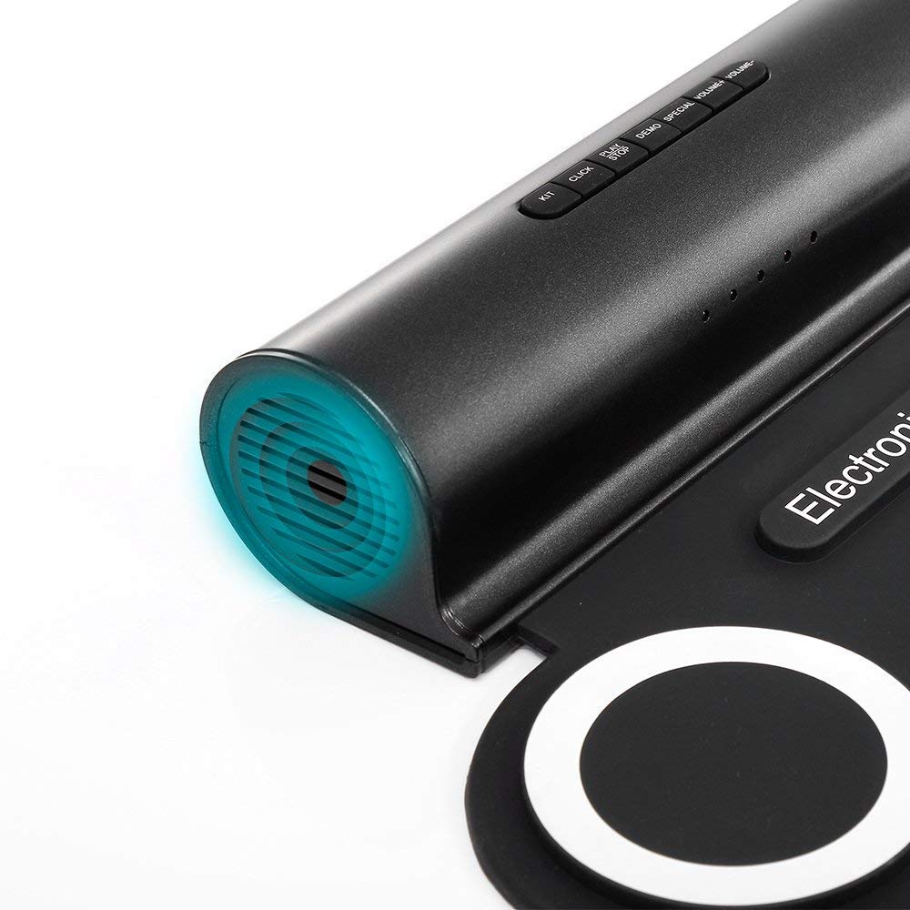 Extend function – built in speaker bring super bass effect, without connecting with other device with USB midi jack and 3.5mm audio plug, the drum could connect with headset, phone and computer to play any drum game