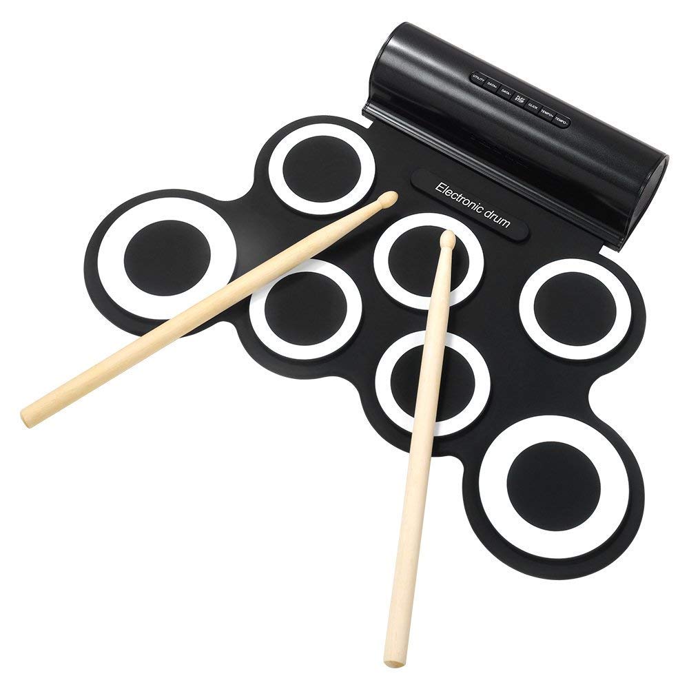 Easy carry – silicon foldable drum kit and collapsible drumsticks allow you take it anywhere, play it anytime just roll it up and put it in your bag