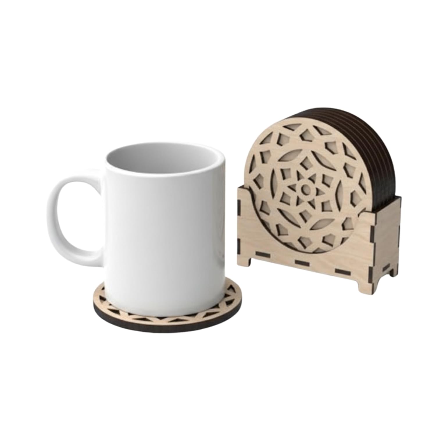Enhance your table décor with this beautifully crafted Mandala Wooden Coaster Set. Each coaster is designed with intricate laser-cut detailing that adds charm, elegance, and artistic warmth to any setup. These coasters effectively protect your surfaces from heat and moisture while complementing your home or office décor. The included wooden holder keeps all six coasters neatly arranged when not in use, ensuring a clean and stylish presentation. Perfect for tea lovers, coffee tables, dining setups, work desks, cafes, and thoughtful gifting.