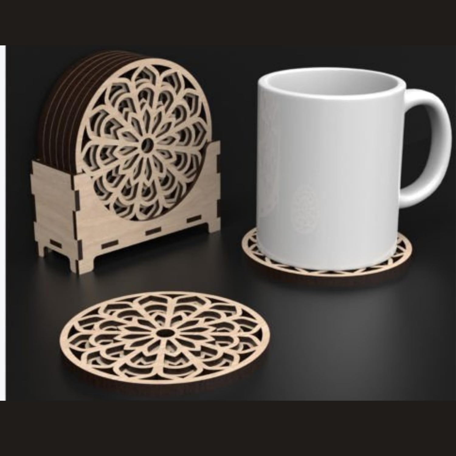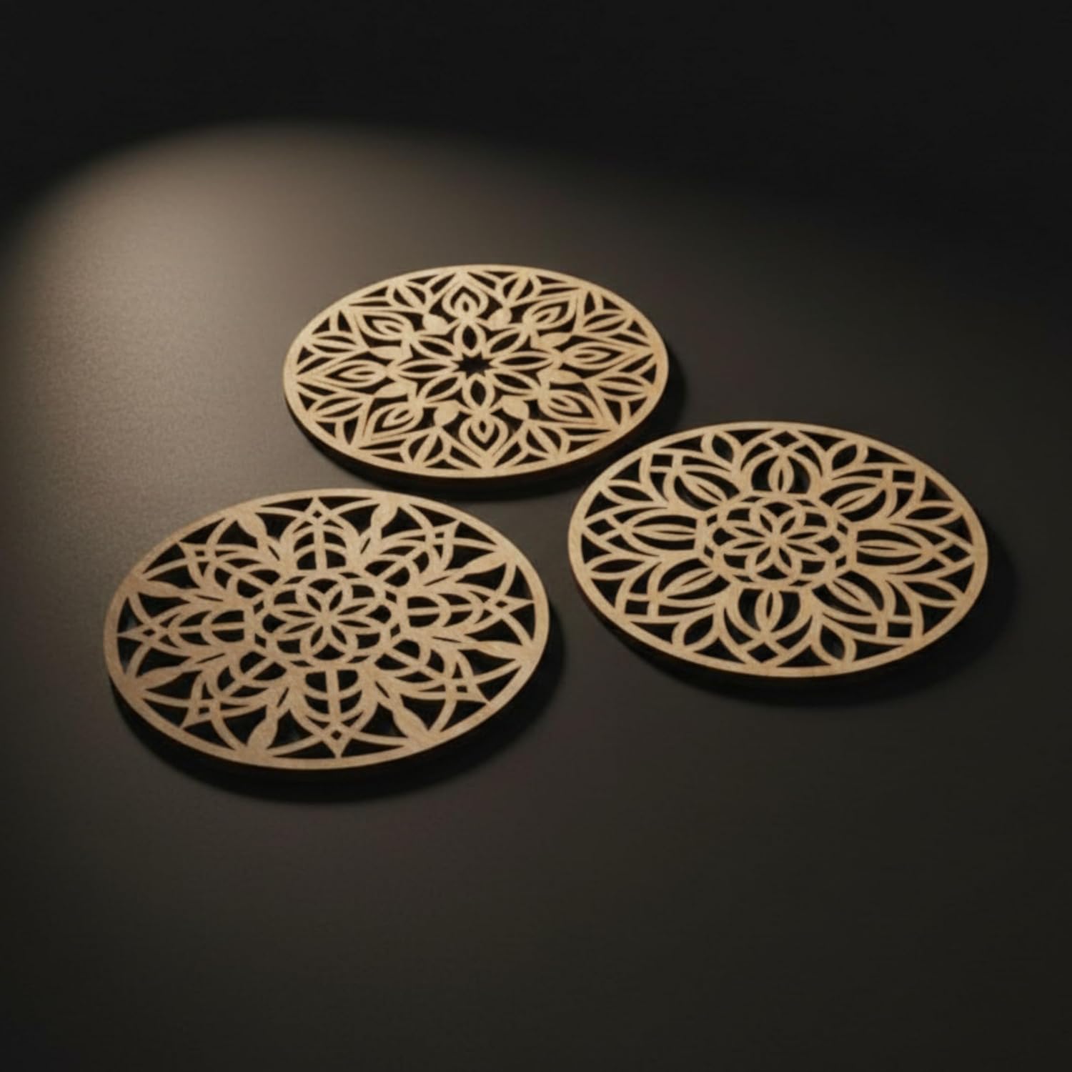 Elegant Mandala Art Design Each coaster features a beautifully detailed mandala pattern created using precision laser cutting, adding a stylish and artistic touch to any table setting.
