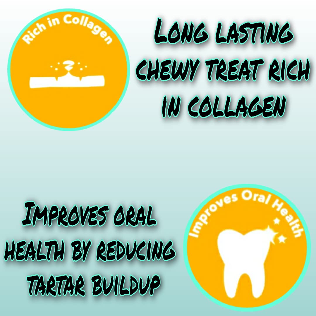HEALTH BENEFITS : Chewing on rawhide bones, dry treats, rolls or twists helps keep plaque away and reduces the acidity in the dog’s mouth that can cause gingivitis