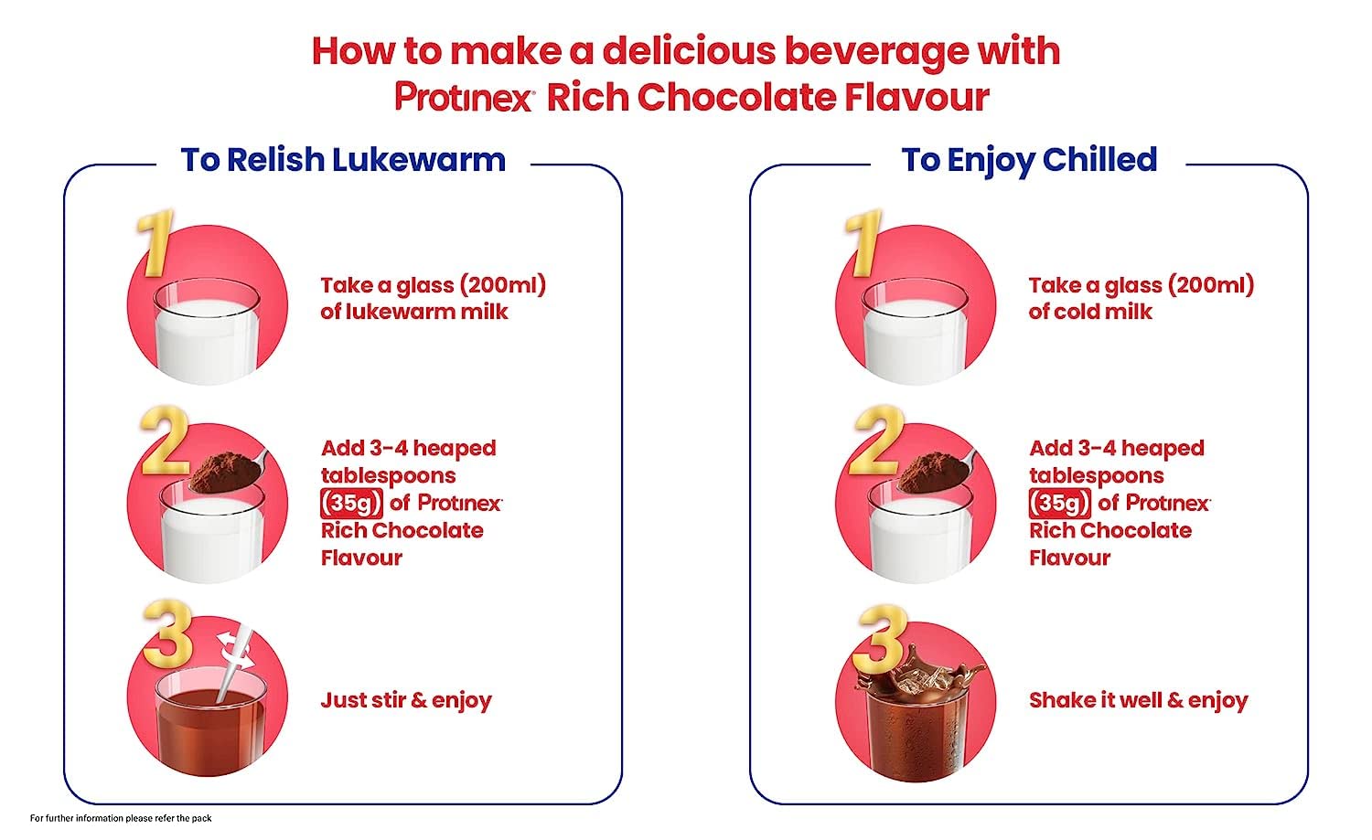 Protinex Rich Chocolate is also enriched with calcium, vitamin D, and immuno-nutrients for your everyday health helping with stronger muscles & bones, long-term immunity and stamina to power through each day.