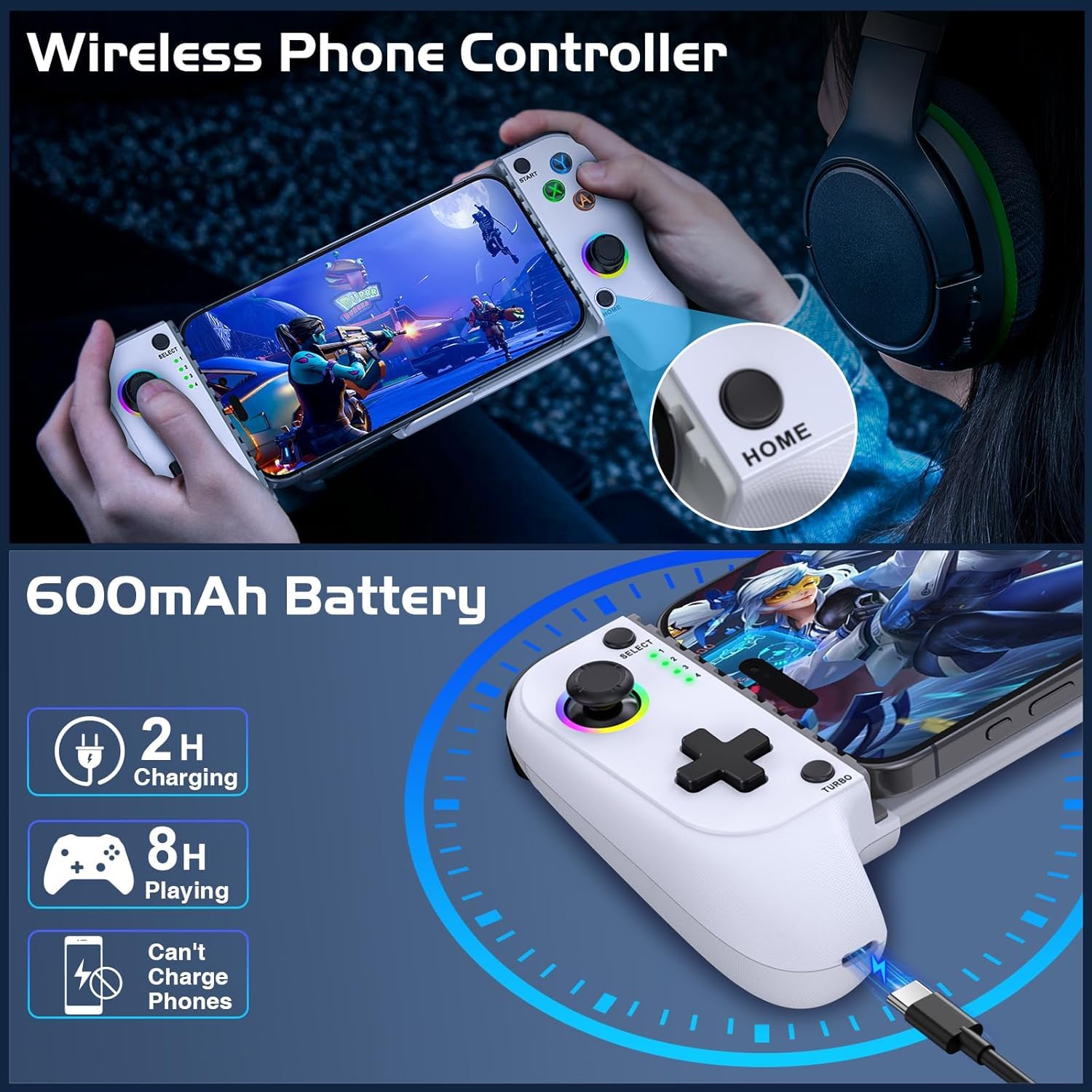 🎮Premium Craftsmanship: Built with Magnetic Hall Joysticks for precise control, RGB Halo Effect lighting, backlit buttons, and durable premium materials for up to 8 hours of lag-free gaming.
