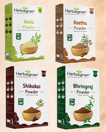 Includes pure powders of Amla, Reetha, Shikakai, Hibiscus, and Bhringraj—no fillers, additives, or synthetic ingredients.