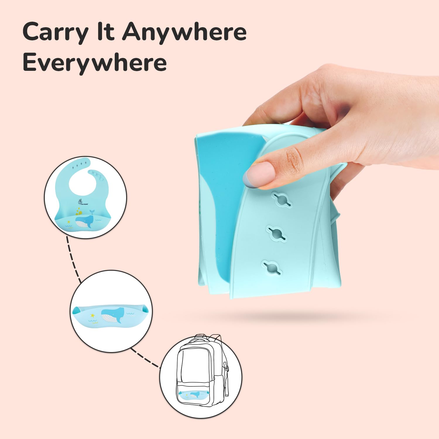 Built-in Food Pocket: Safari Silicone Bib has a spacious pocket that catches food spills, keeping your baby and surroundings clean.