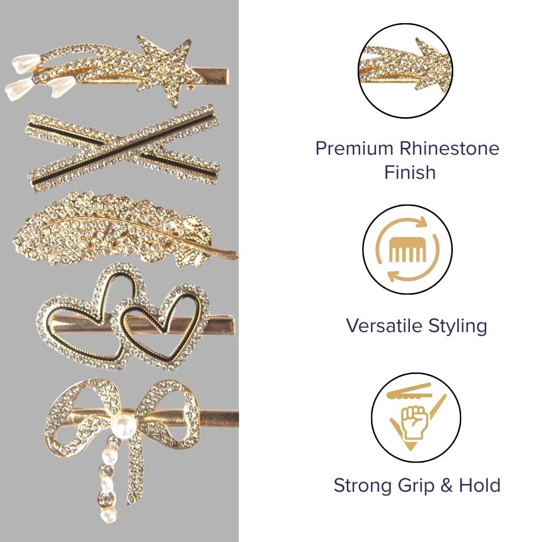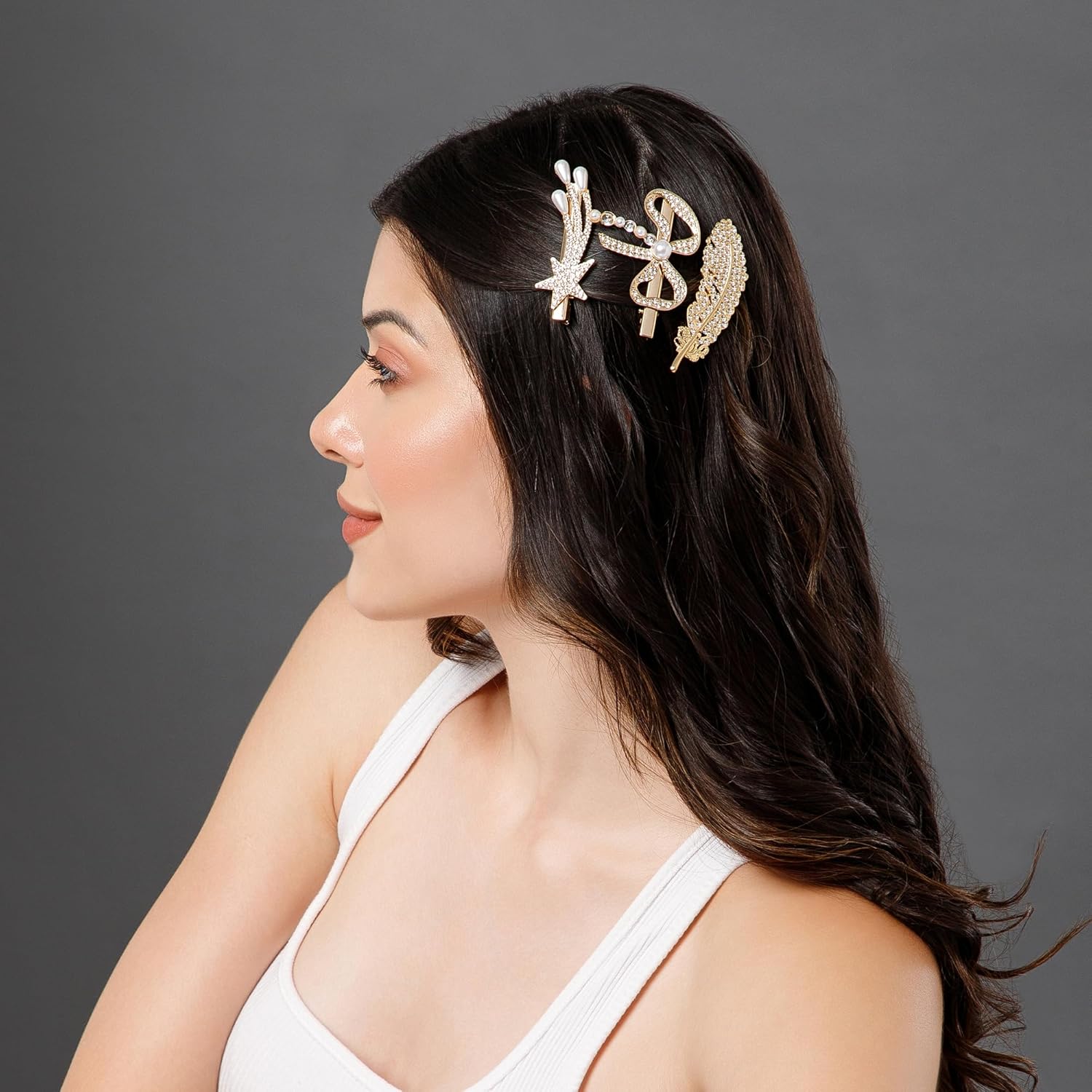 PACKAGE CONTENTS: You will receive 5 different and exquisite clips in golden finish. Each design is different from another. Designs for this package are carefully selected by our experts to give you variety and value for your money. Every design is unique and pretty in its own way.