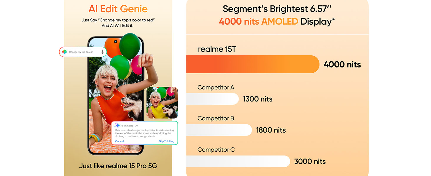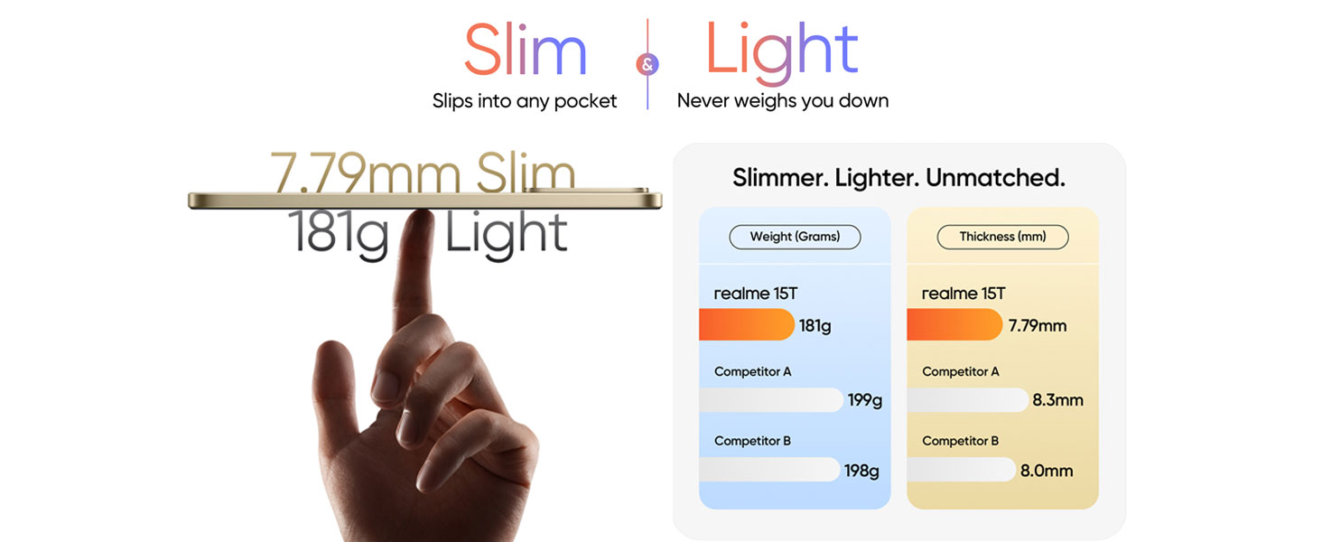 IP69 Protection for India’s Weather Built with IP69 rating, the Realme 15T 5G resists dust and sudden rains—common in India. Carry it outdoors, to markets, or on trips without worrying about damage from dusty conditions or unexpected downpours, making it durable for daily use.
