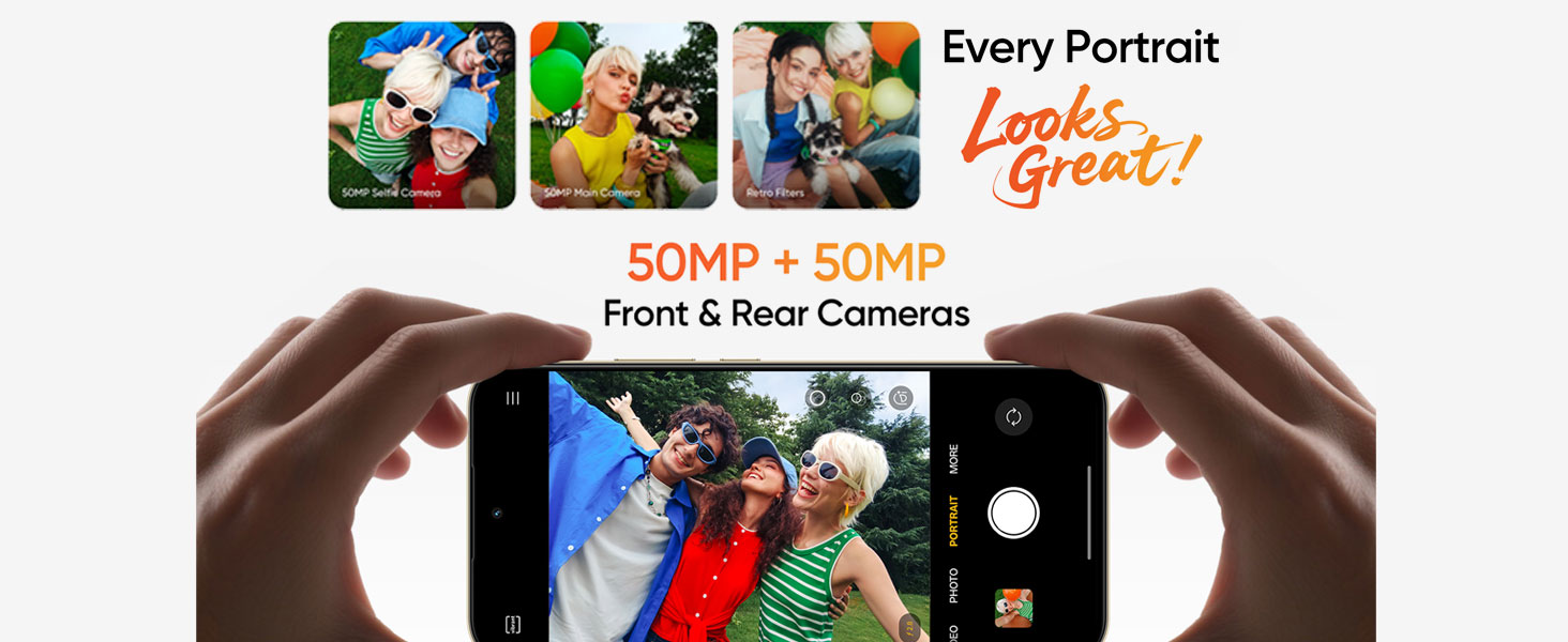 Dual 50MP Cameras to Capture Every Moment Front and rear 50MP cameras let you snap sharp, detailed photos—whether it’s festival celebrations, street food, or family gatherings. Even in low light (like evening religious ceremonies), the rear lens delivers great results, while the front cam ensures clear selfies and video calls with loved ones.