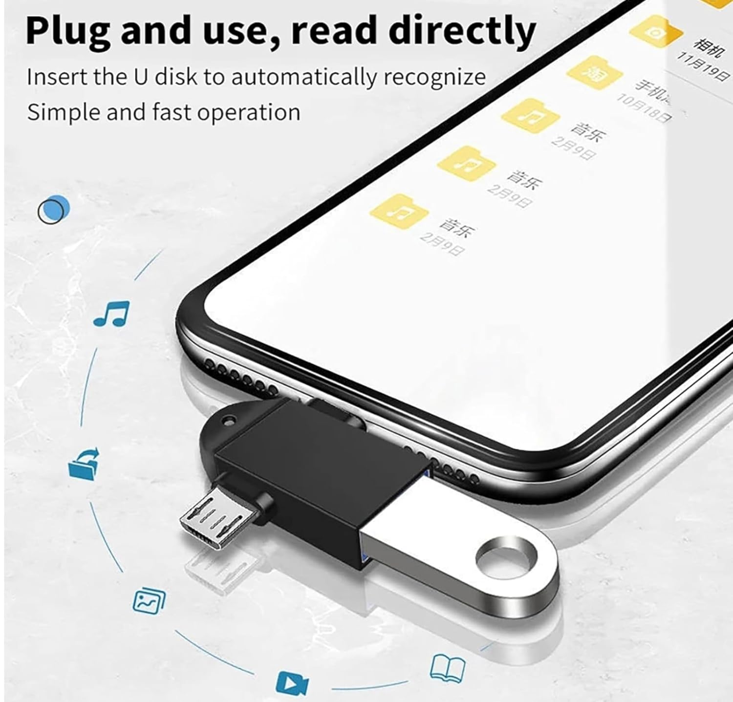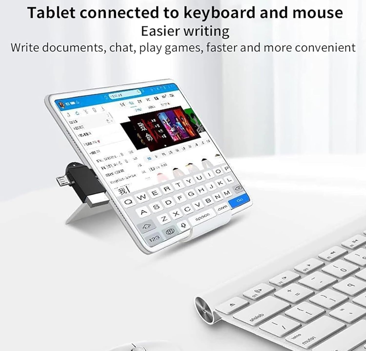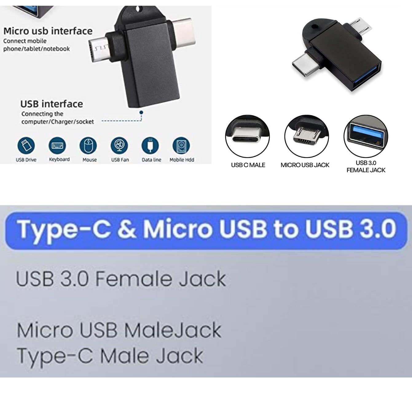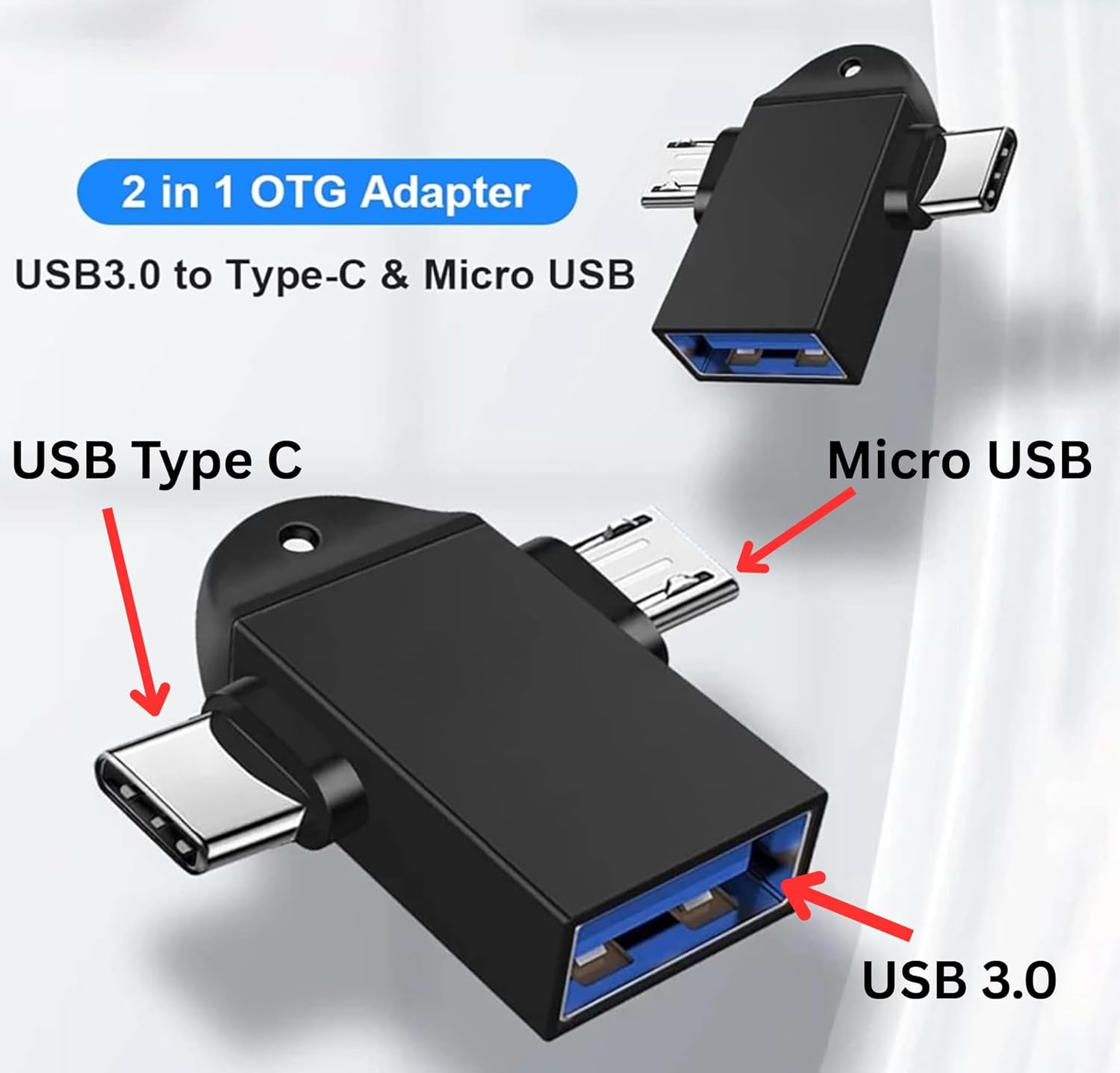 2-in-1 Dual OTG Adapter – Features both USB-C and Micro USB male connectors to support a wide range of Android devices. Compatible with smartphones, tablets, and laptops with OTG functionality.