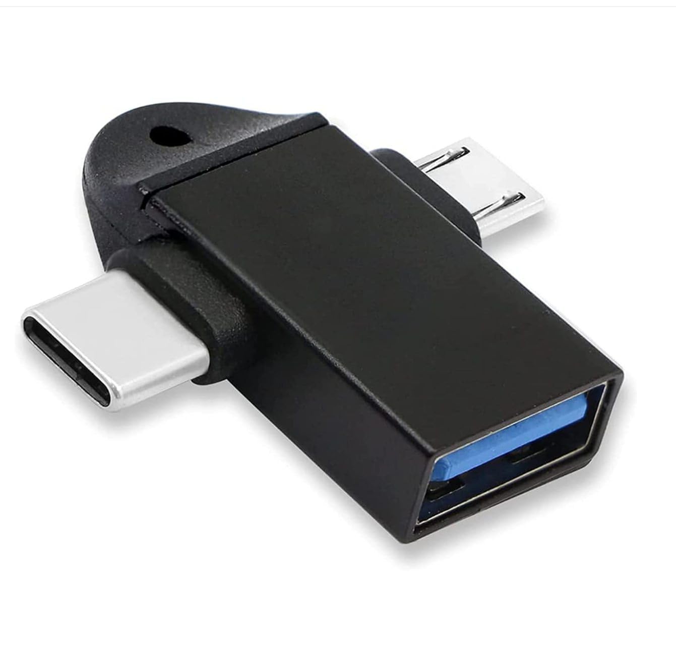 2-in-1 Dual OTG Adapter – Features both USB-C and Micro USB male connectors to support a wide range of Android devices. Compatible with smartphones, tablets, and laptops with OTG functionality.