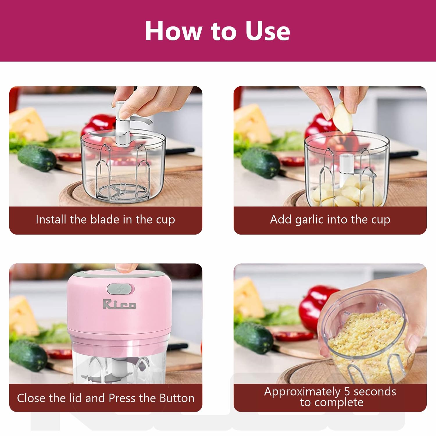 USB Charging & Portable – Chopper supports type C USB charging, handheld cordless mincer can be used about multiple times after being fully charged. This 250ml portable food processor features compact volume and satisfies the needs when traveling or camping.