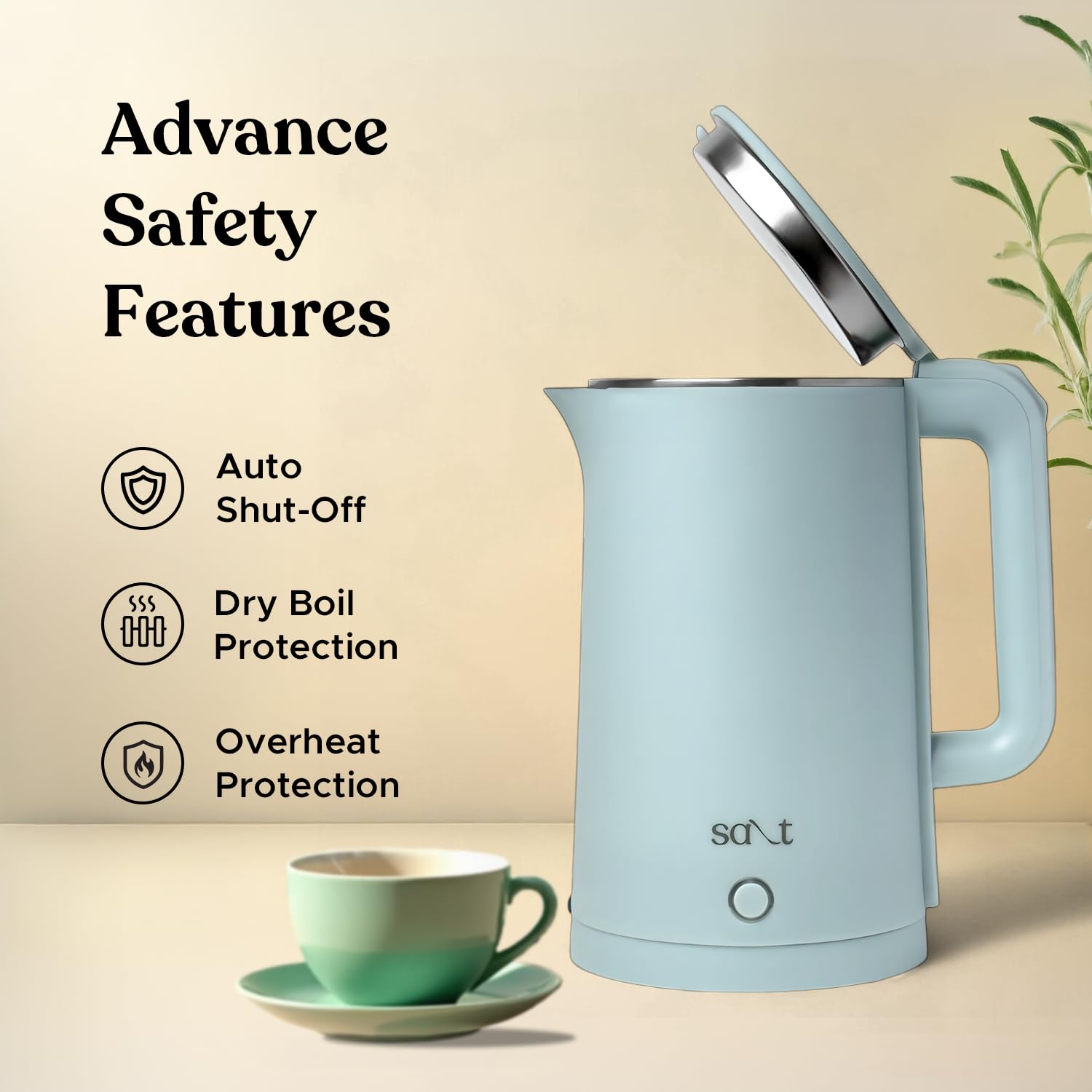 Salt SteamWell Pro Premium Electric Kettle | Super Fast Heating with 1500W Power | Auto Shut Off & Boil Dry Protection | Rust Free Stainless-Steel I Dual Layer Cool Touch Surface | 1.8L (Sky Blue)