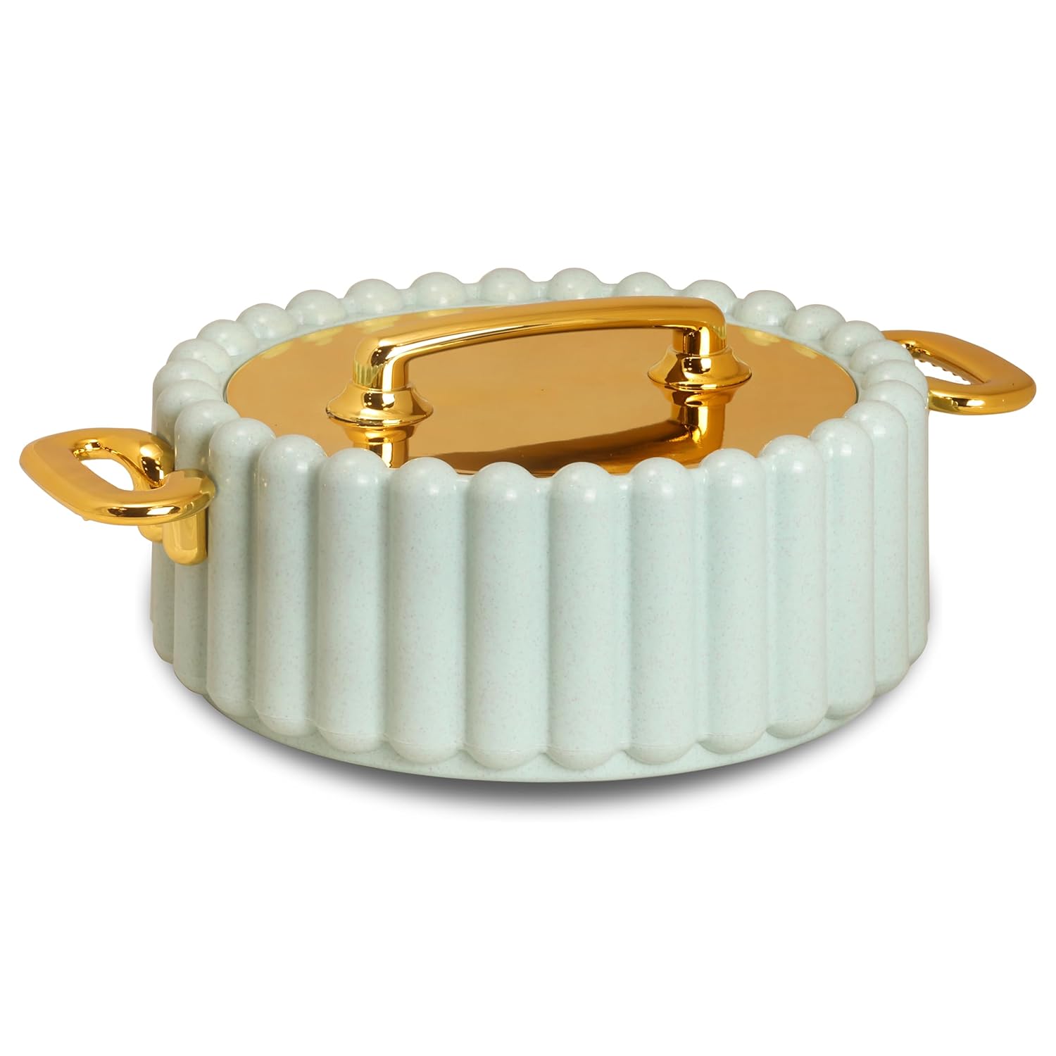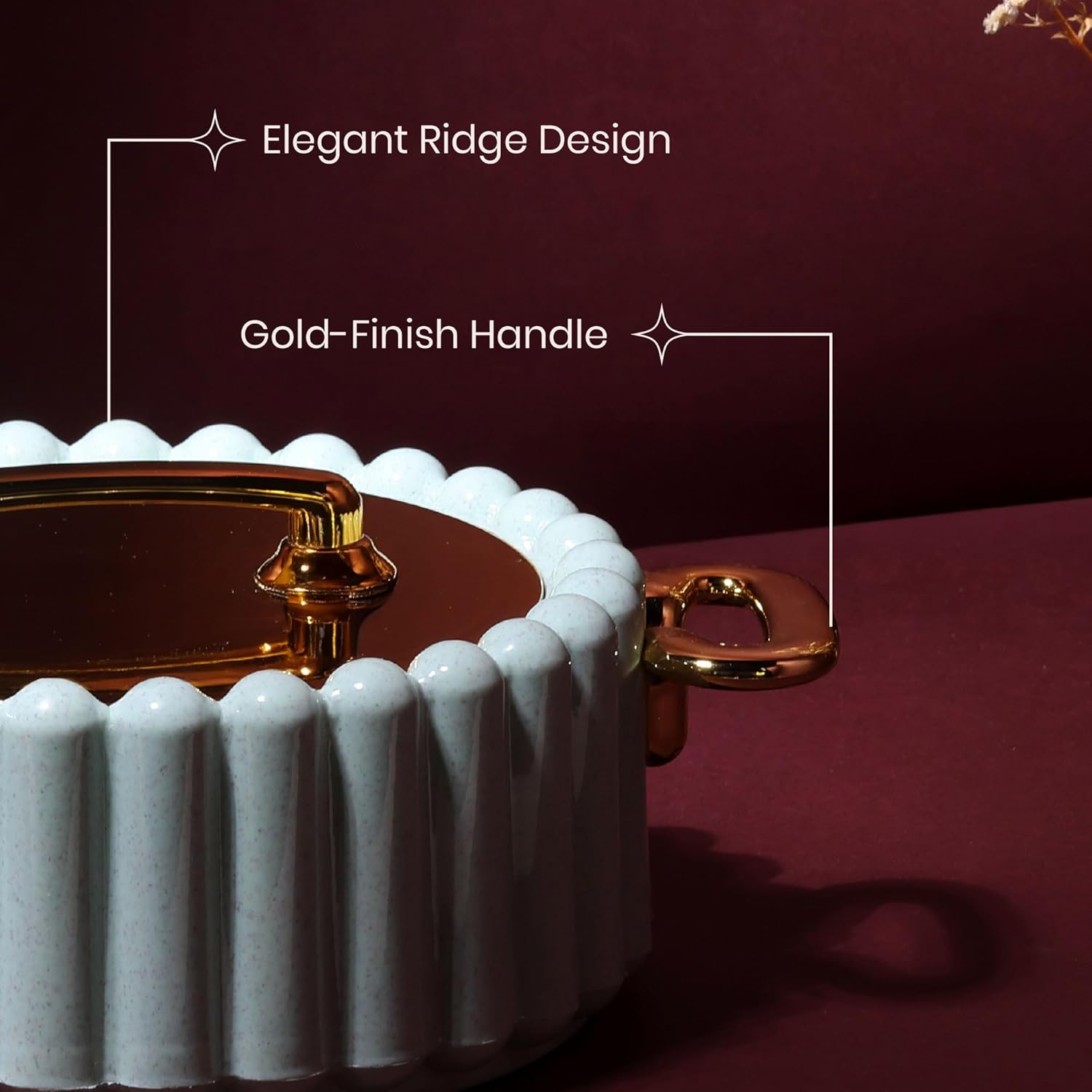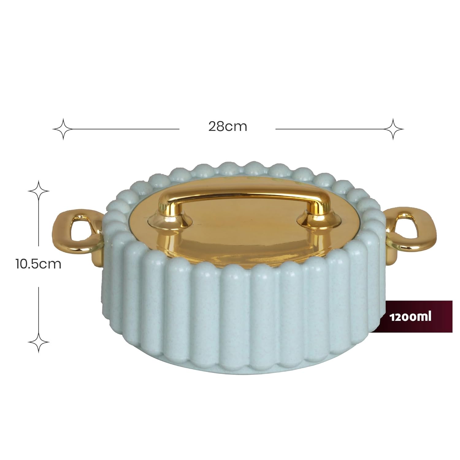 Stylish and Elegant Design: Ridge Pattern: Enhances the visual appeal of your serveware. Gold-Finish Handles: Ergonomically designed for a luxurious touch and easy handling.