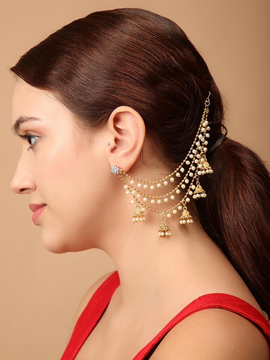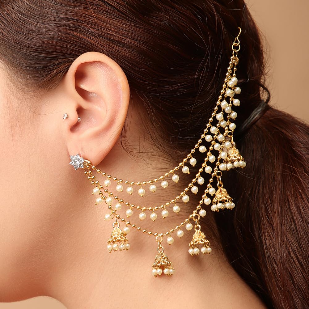 Latest New Bahubali Inspired Kan Chain Hair Accessories which can be attached to any Traditional Earrings for Women – Shining Diva Fashion Jewellery presents these Pearl Studded Stylish Fancy Party Earrings. A designer pair of Earings that will make you feel like a Diva. The color complements all outfits & may be worn as a statement piece to any occasion. Shining Diva is pioneer of Imitation Jewellery for Women and Traditional Wedding Party Wear Necklace Jewellery Set. Buy Shining Diva trendy, artificial and stylish jewellery for women from Amazon. These are also ideal for birthday gifts for girls, girlfriend, wife, wedding gifts and anniversary valentine gift for girlfriend. Jewelry For Women