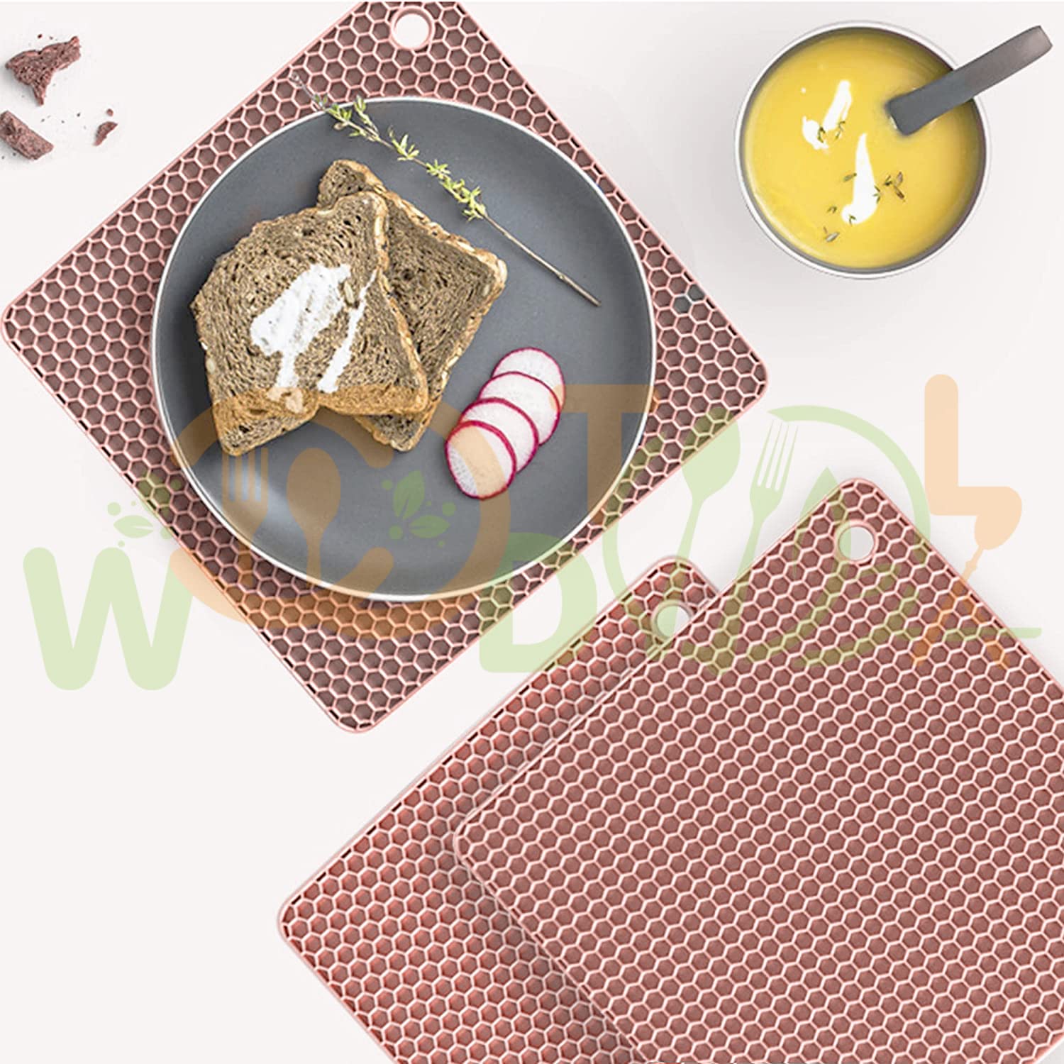 [ Multipurpose Mat ] : The trivets for hot pots and pans work as oven mitts, chocolate chips mold, pot and pan protectors, drying mat, coaster, stuck jar lid opener, frisbee and many more uses. Also get these for your mom or dad as gifts.