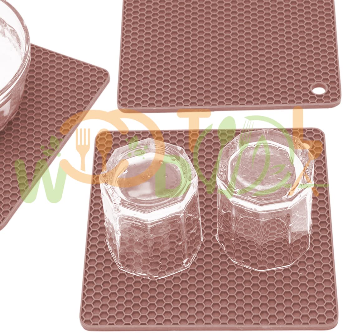 Product Dimensions – 18 x 18 x 1 cm; Package Included : 4 – Piece Silicone Mat; Colour : Brown