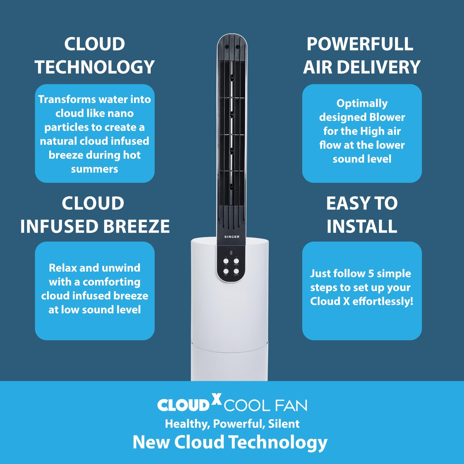 ☁️ Advanced Cloud Technology: Innovative mechanism, transforms water into cloud like nano particles to create natural cloud infused cool breeze