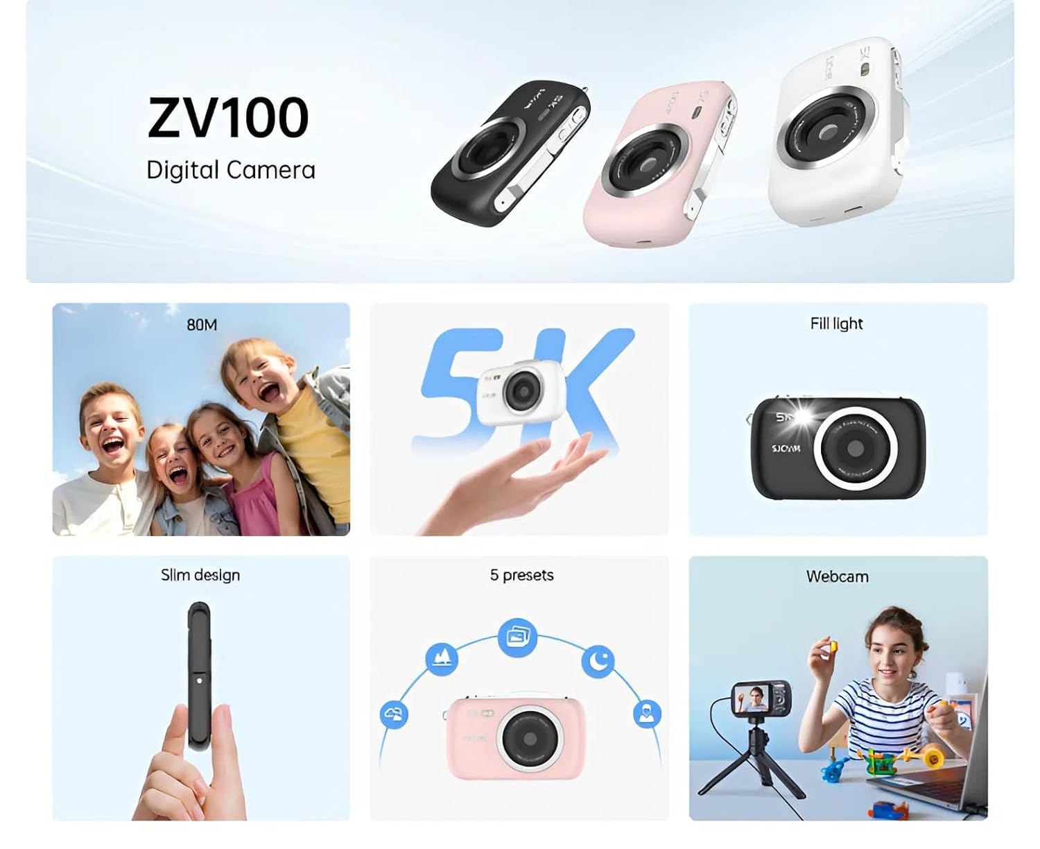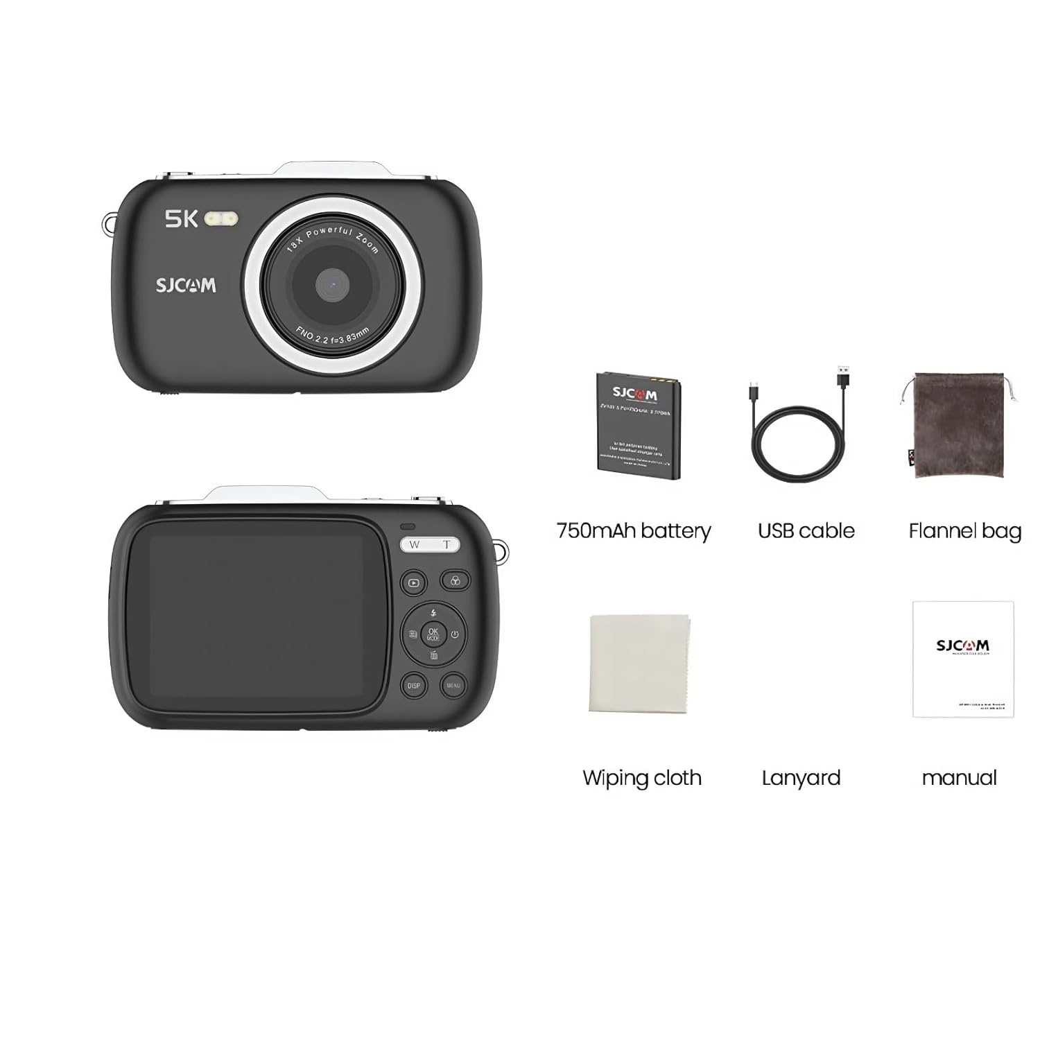 Accessories Camera x 1, Battery x 1, Type-C Charging Cable x 1, Lanyard x 1, Carry Bag x 1, Manual x 1 Processor Allwinnertech V3 Sensor 2.86″ CMOS Aperture Aperture F/2.2 Screen 2.8″ TFT Video Resolution 5K(4608*2650) 15fps, 4K(3840*2160)60/30fps, 2.7K(2720*1520)60/30fps, 1080P(1920*1080)120/60/30fps, 720P(1280*720)120/60/30fps Video Mode Video, Video Lapse, Slow Motion, Loop Recording Photo Resolution 80MP, 64MP, 56MP, 48MP, 36MP, 24MP, 20MP, 16MP, 12MP, 8MP, 5MP Digital Zoom 18× Filter Effects Color, Grayscale, Negative, Nostalgia, Red, Green, Blue, Dog’s Eye Storage Max 256GB Micro SD Battery Life 55-60 Minutes Weight 165g Size 10.6 x 6.8 x 2.4 (cms)