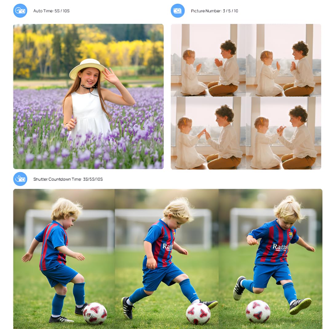 𝐁𝐮𝐢𝐥𝐭‑𝐢𝐧 𝐂𝐫𝐞𝐚𝐭𝐢𝐯𝐢𝐭𝐲 𝐓𝐨𝐨𝐥𝐬 : Choose from 5 preset scene modes (e.g. Normal, Blue Sky, Night View, Portrait), and apply 8 built-in filters like Color, Grayscale, Nostalgia, or even “Dog’s Eye” to stylize your content in-camera