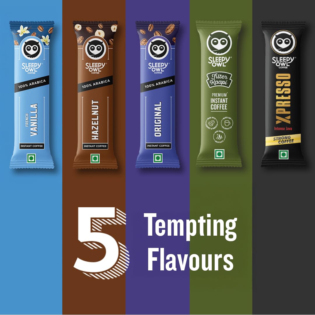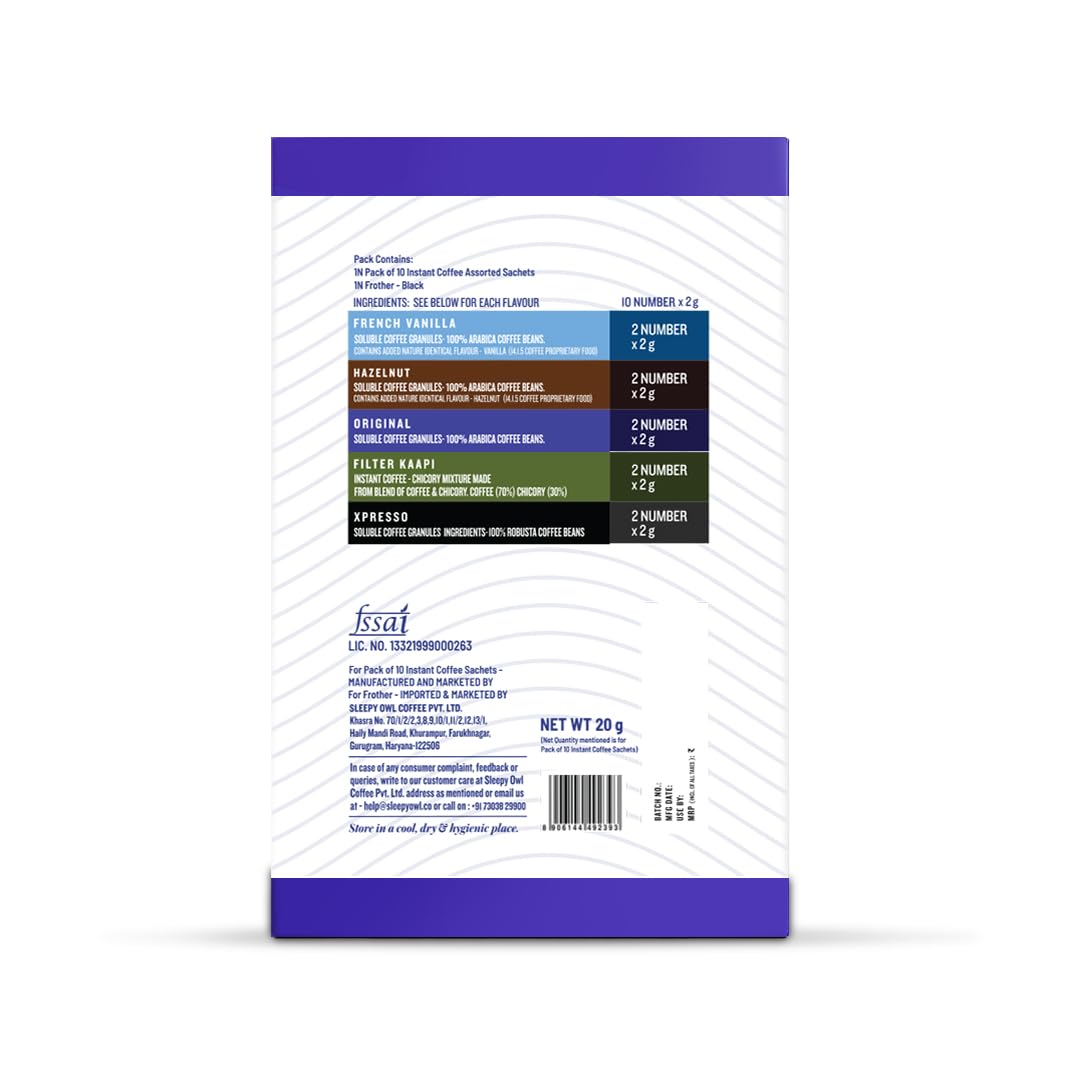 Premium Assorted Coffee Sachets – Comes with 5 exciting flavors: Xpresso, Hazelnut, French Vanilla, Original, and Filter Kaapi, so you can enjoy a premium brew experience at home.
