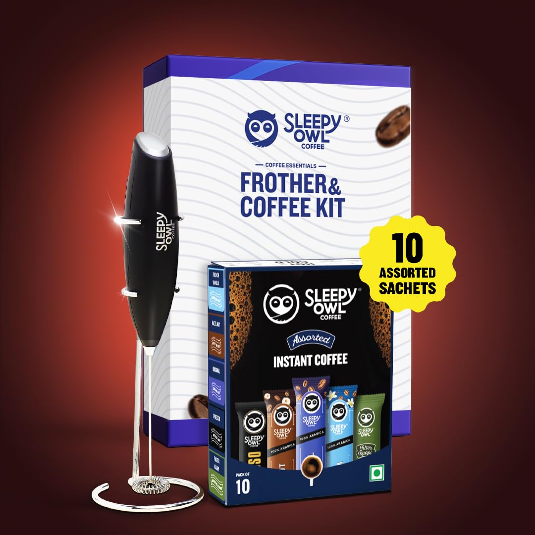 Café-Style Coffee at Home – This Diwali, enjoy rich, creamy froth for lattes, cappuccinos, and more with the Sleepy Owl Frother & Coffee Kit.