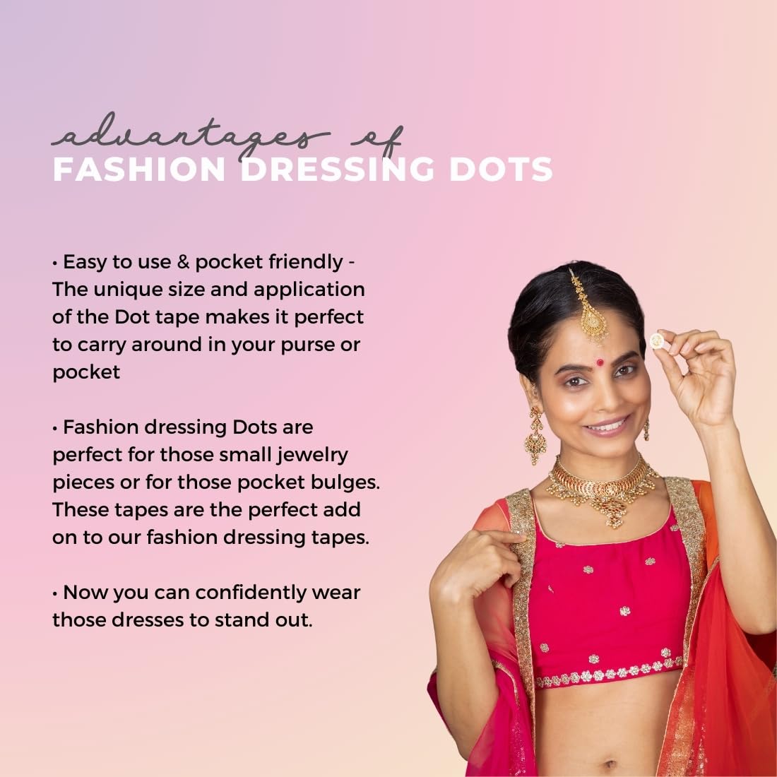 SlickFix Fashion Dressing Dots Tape (Pack of 36) Double-Sided Round Fashion Tape for Tie, Necklace, Collars & Shirt, Maan Tikka,with Skin Friendly Adhesive Body Tape for Women and Men