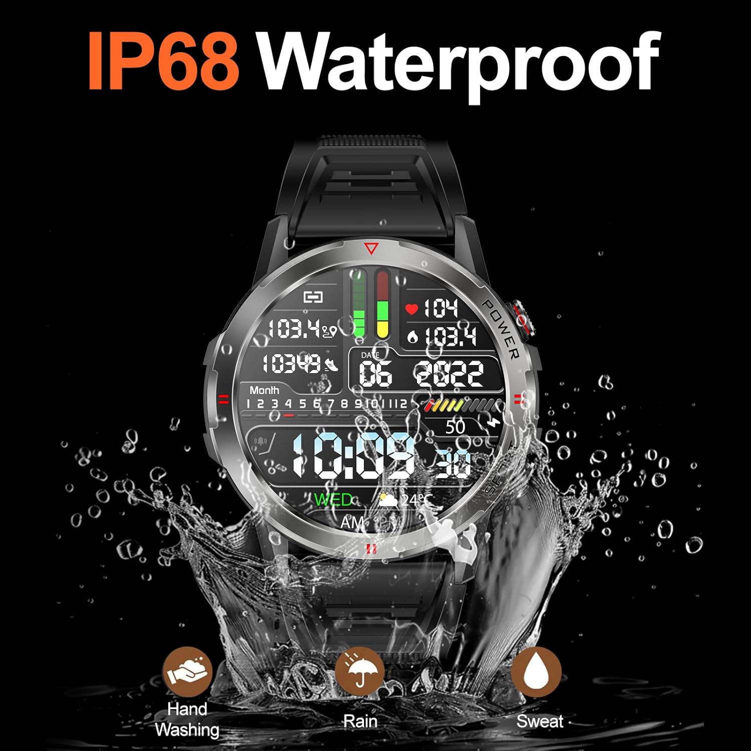 Long Battery Life & IP68 Waterproof: Just charge for 2.5 hours and enjoy 7-10 days of normal usage. The IP68 waterproof rating of this smartwatch meets most daily waterproof needs, ensuring that it can withstand sweat, hand washing, or rain in daily life, allowing you to use it with confidence (please do not wear it while swimming).