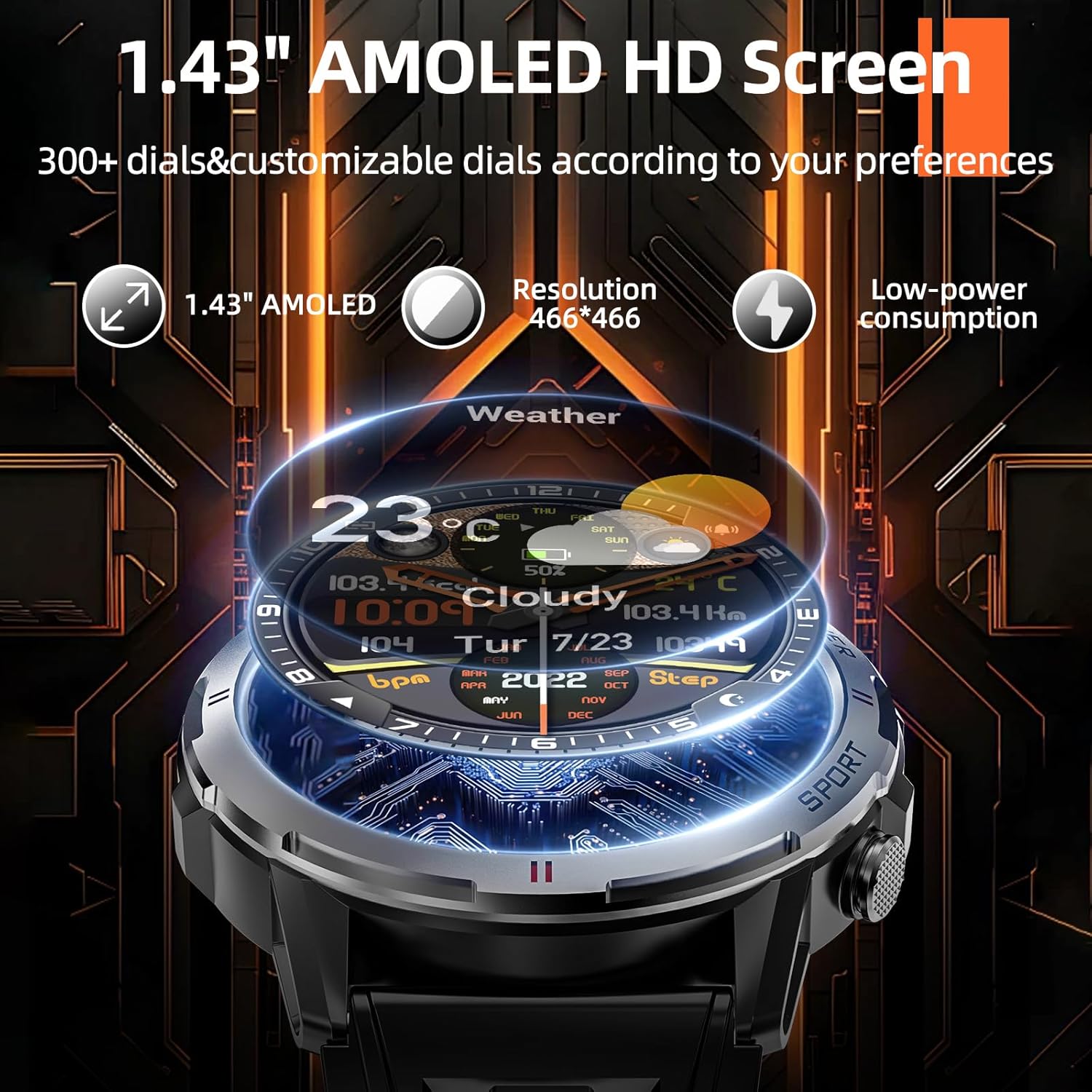 1.43″ AMOLED Display: Weofly smartwatch features a 1.43-inch ultra high definition AMOLED screen. Compared with traditional LCD screen watch, our smart watch has lower energy consumption, brighter and richer colors, and can clearly read screen content even outdoors during the day.