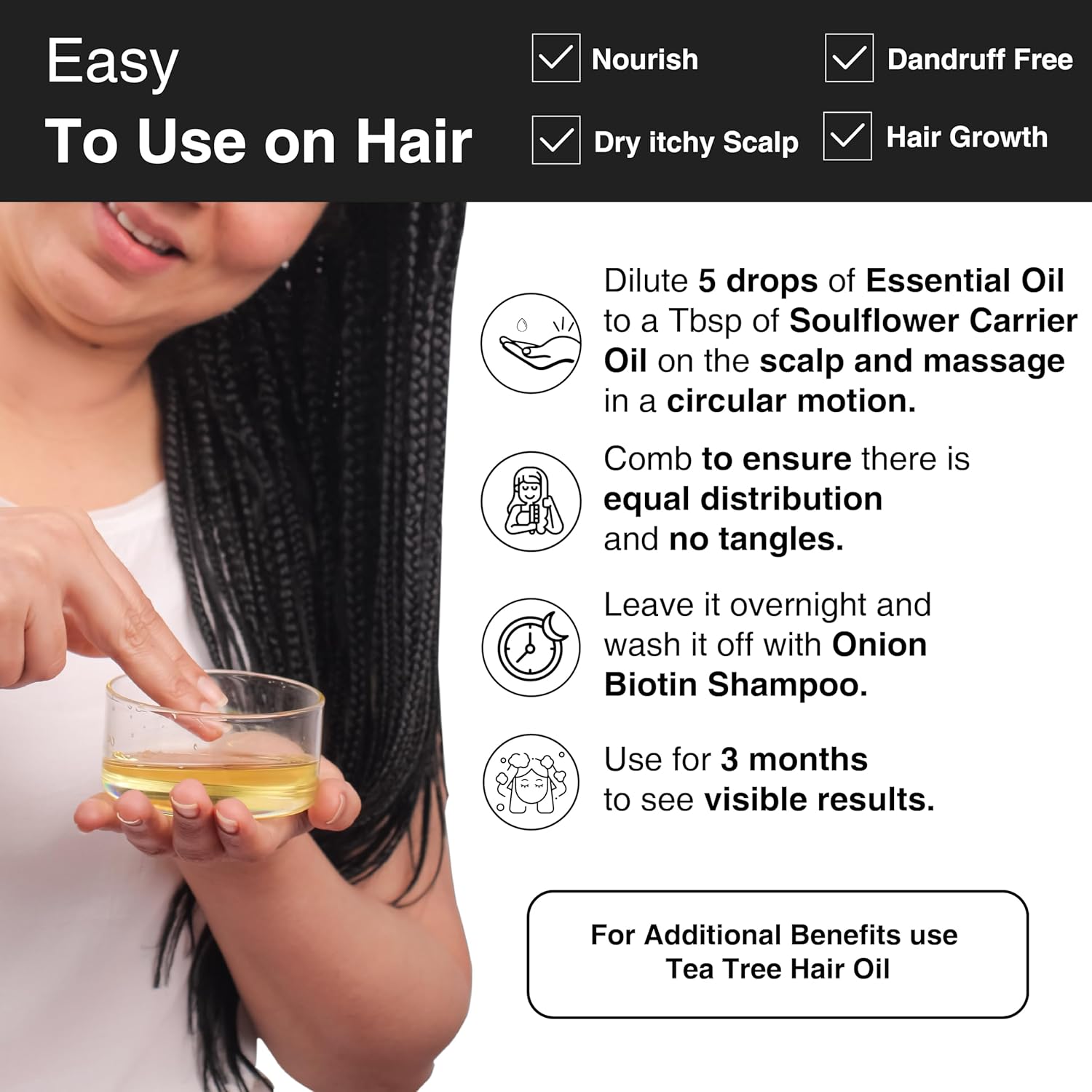 “22 Saal ka Bharosa” for HEALTHY, DANDRUFF FREE SCALP for Hair Growth: Soulflower Tea Tree Essential Oil is all you need for your Dandruff problems and to promote hair growth. It helps reduce dandruff, itching and scalp flaking and also restores frizzy and damaged hair