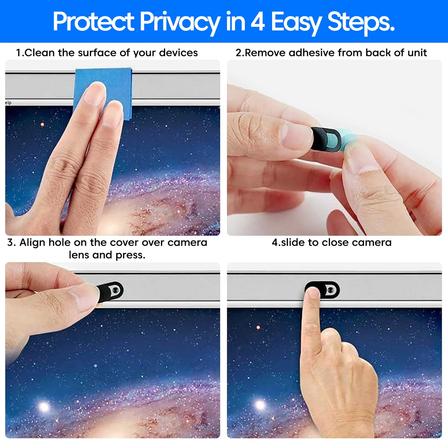 ✅【Strong Adhesive & Effortless Installation】: Each webcam cover is equipped with a high-quality durable adhesive that sticks firmly to your device for long-lasting use. Installation is quick and hassle-free—just peel off the backing and press firmly onto your device. The cover slides smoothly for easy open-and-close operation. When removed, the adhesive leaves behind no sticky residue or marks, keeping your laptop, phone, or tablet looking as good as new.