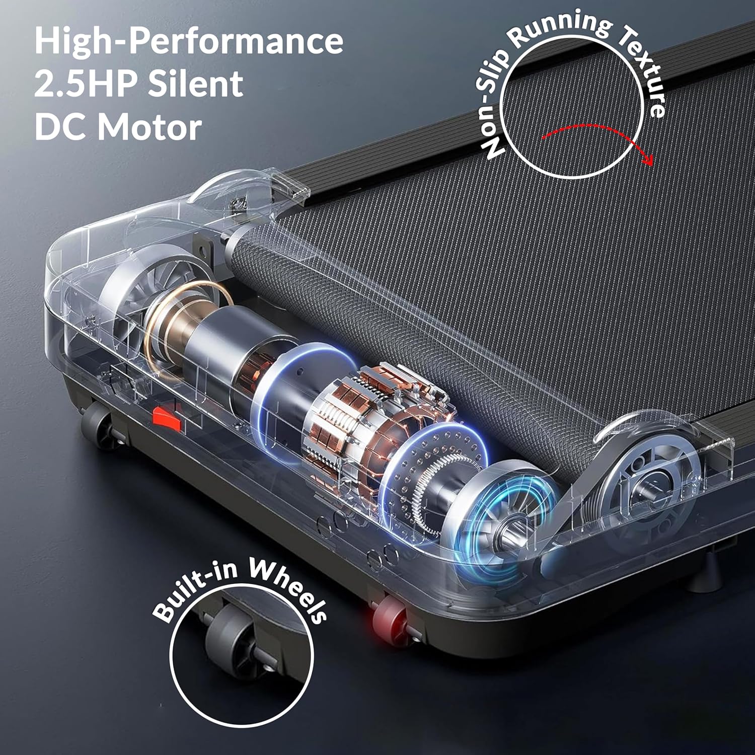 ● Console for Seamless Control: The sleek, low-profile console provides quick, intuitive access to speed adjustments and start/stop functions, keeping focus on fitness rather than complex controls.