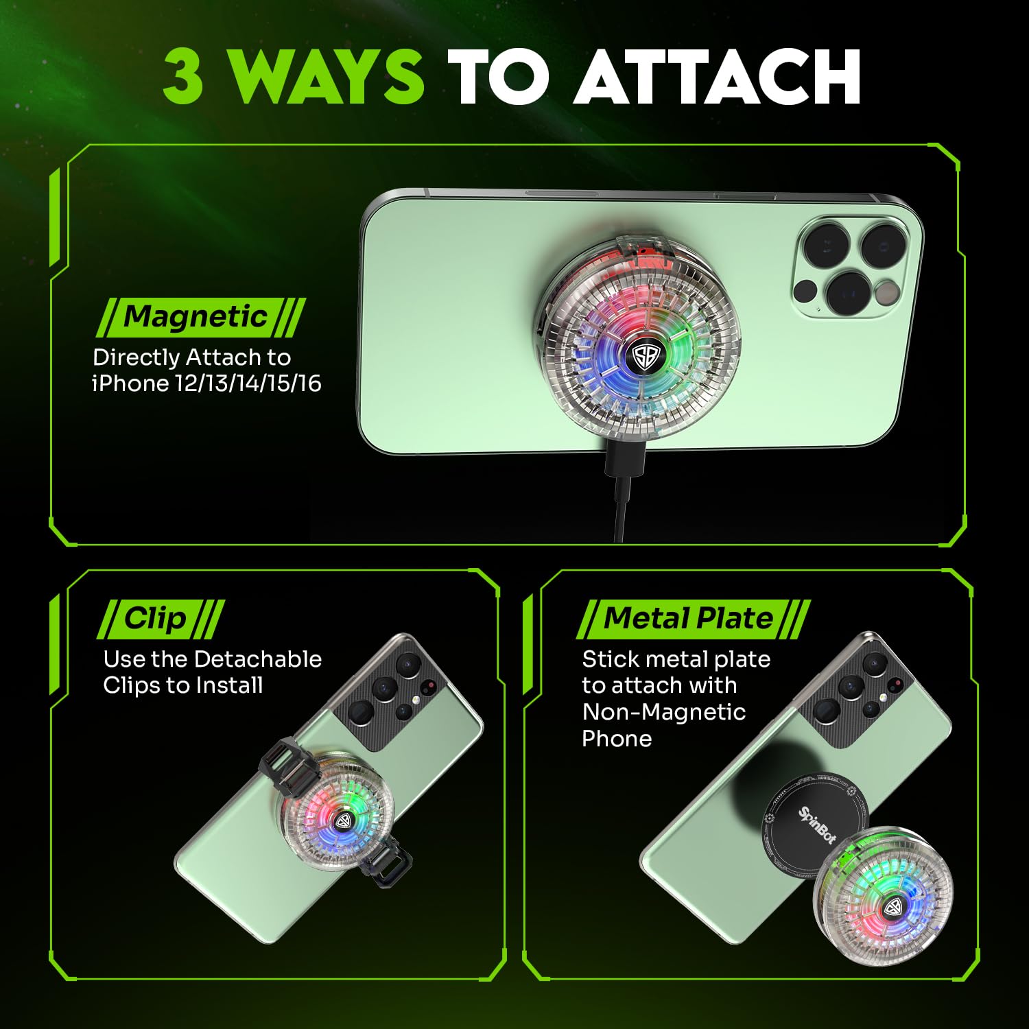 Magnetic + Metal Plate + Clip – Universal Fit for All Phones: Attach effortlessly via Magnet or use the included clip and metal plate for non-Magnetic devices. Quick setup, no adjustments – just instant cooling for any smartphone.