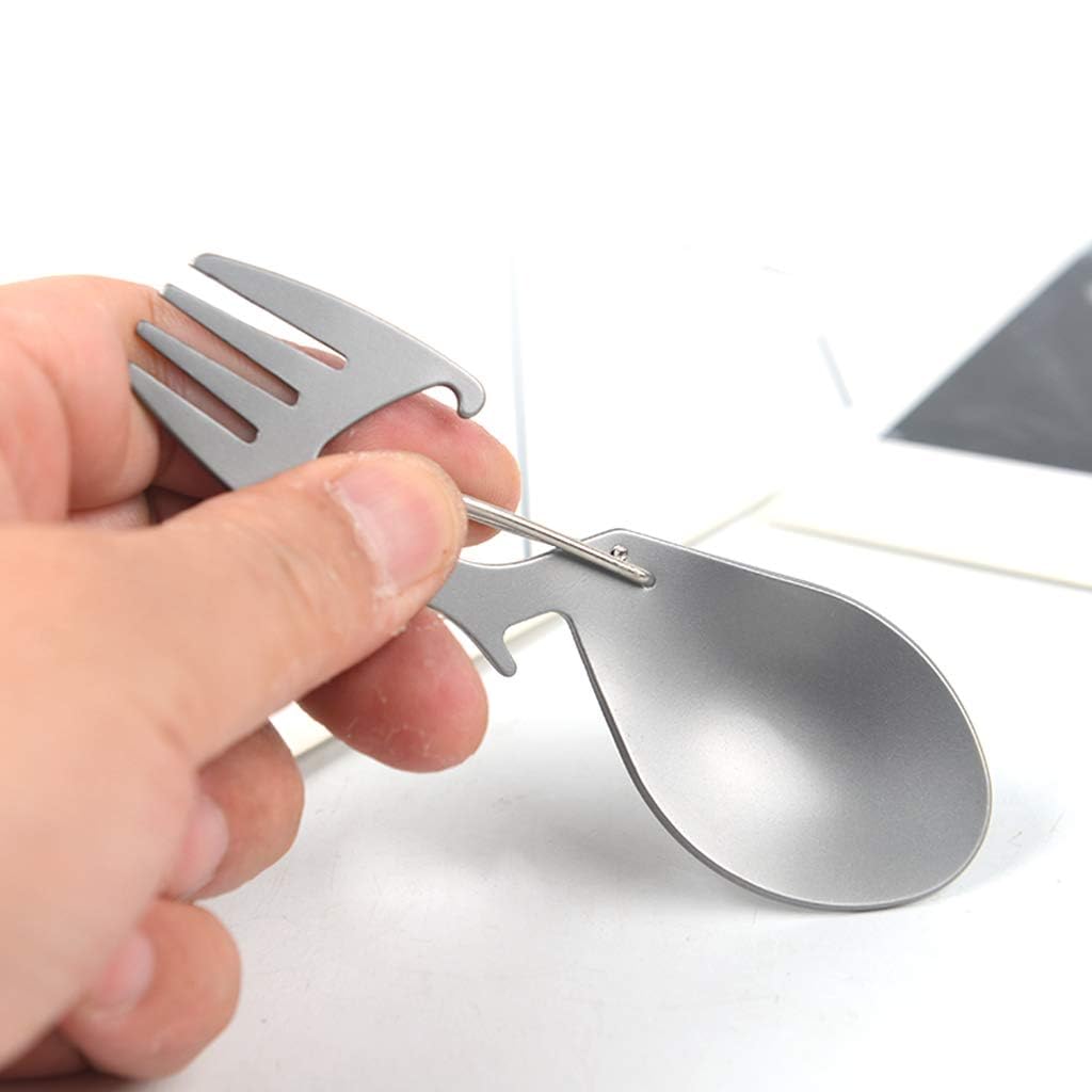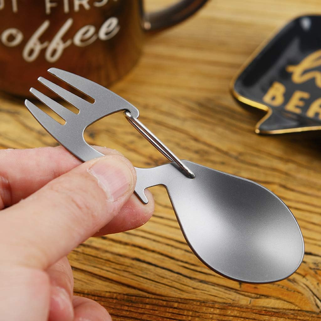 【Dual-Function Design】This titanium spork combines a spoon and fork in one compact tool, eliminating the need for multiple utensils during outdoor adventures, travel, or daily meals; Its versatile design makes it ideal for camping, hiking, office lunches, and home dining.