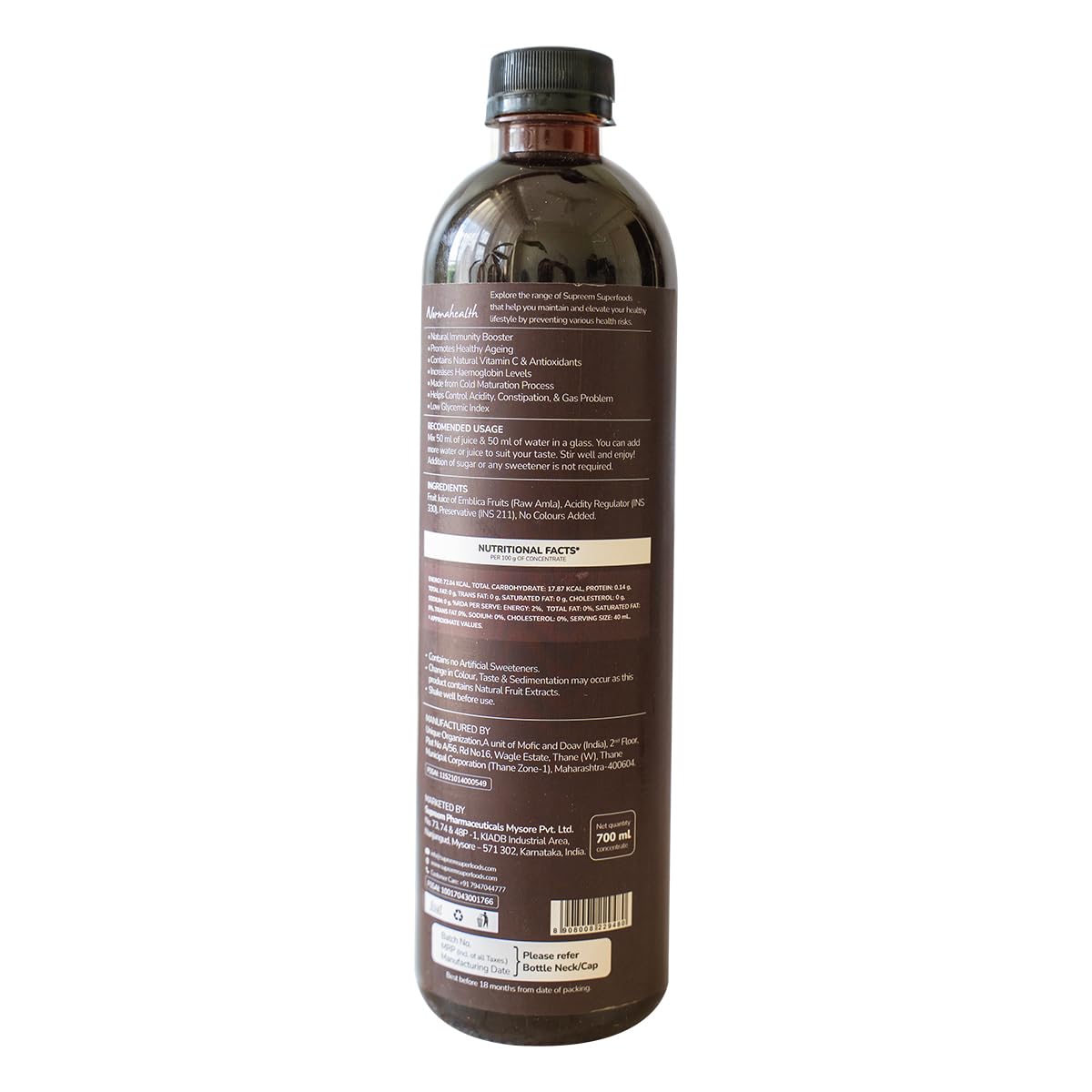 Pure Amla Extracts: Since it is only pure amla extracts, you might see some sedimentation or mild change in colour & taste. It is completely natural & does not mean the product has gone bad.