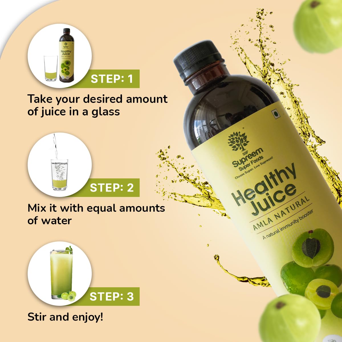 All-Natural Goodness: Our all-natural Amla juice is taken out from raw emblic nuts (raw amla). It is pure natural & can directly be consumed after mixing it with water in a 1:1 ratio. It does not require any additional sweeteners.
