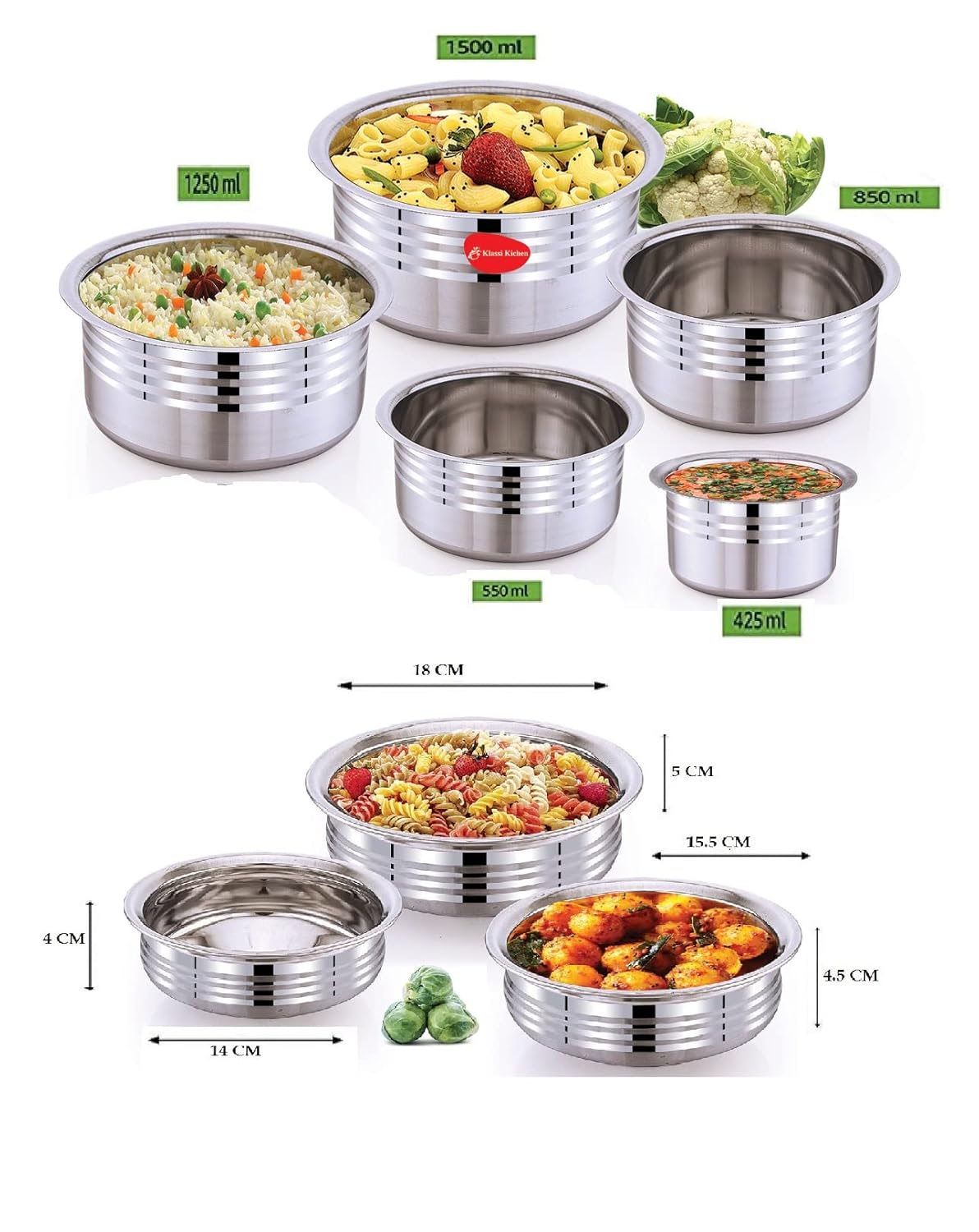 These Handis are made of High Quality stainless steel material And Silver Touch mirror finish will give it classy and attractive look. It will made your Dining Table look more classy. These Handis will come with perfectly So, Grab this steel beauty and serve with style in these handi.