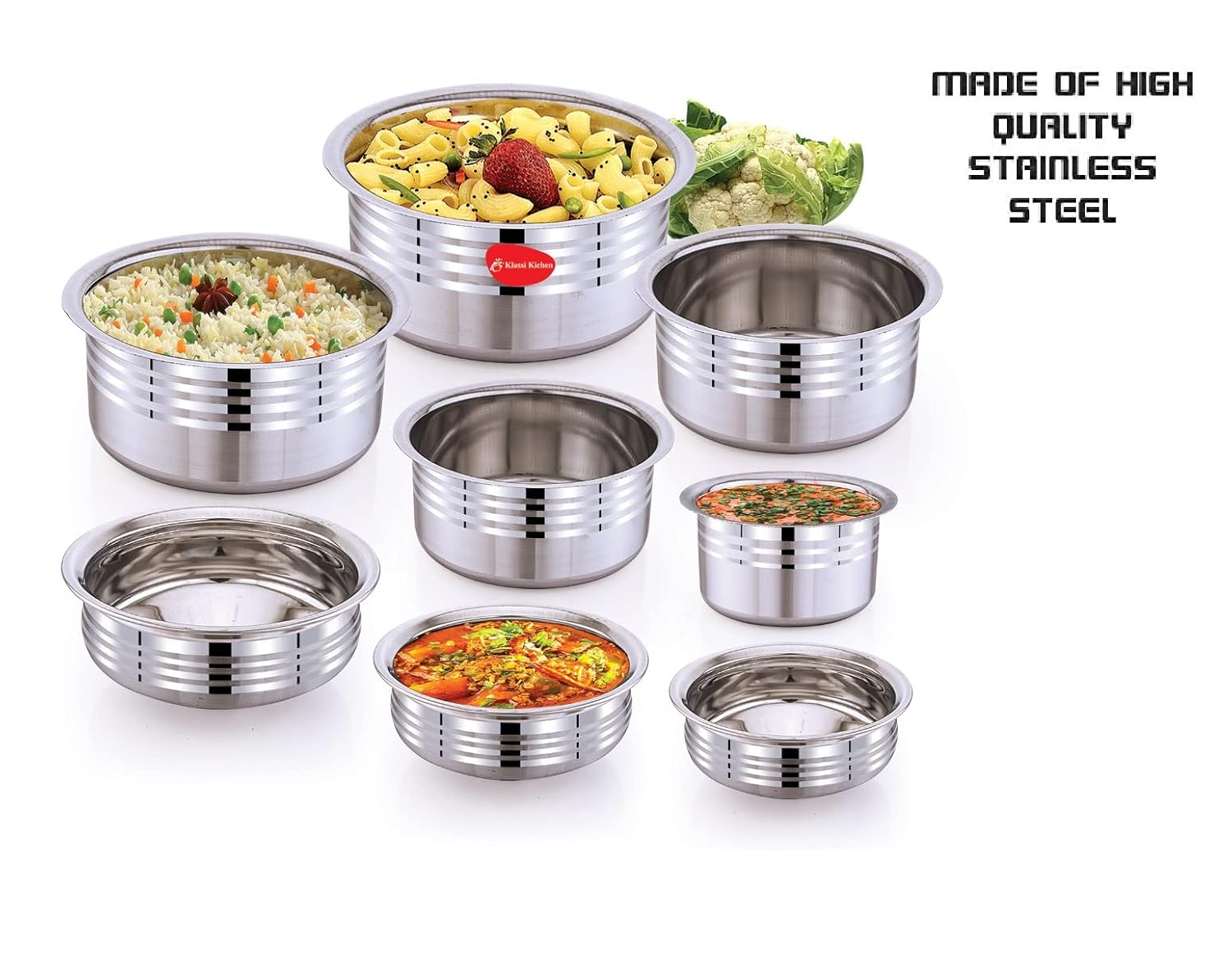 Stainless Steel Kitchen Set for Home Tope, Handi Set of 8 Induction Bottom Cookware Set
